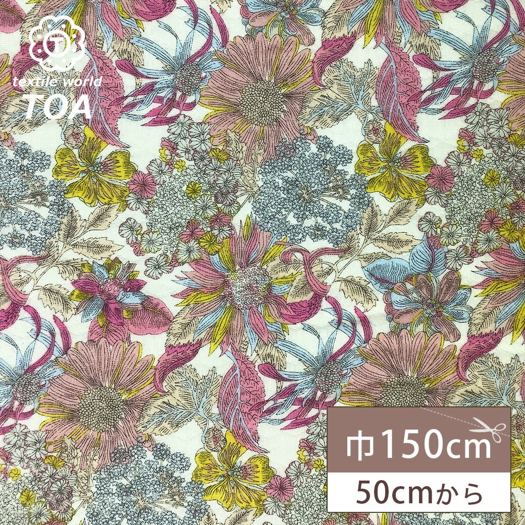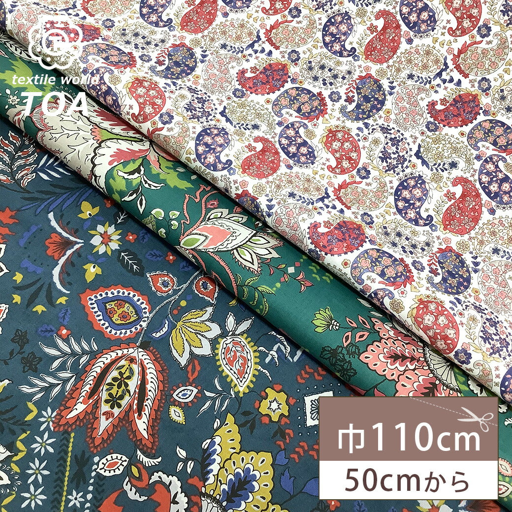 ポリエステルとコットンをブレンドしたポリコットン生地。コットンのやわらかさとポリエステルの丈夫さを兼ね備え、洋服やバッグ、小物作りに最適です。シワになりにくく扱いやすい素材です。