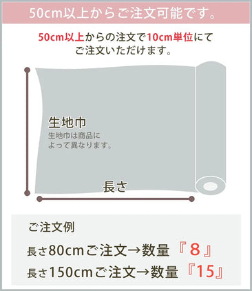 50cm単位での販売の商品が多いですが、商品によっては1m単位のものや、パネル単位、すでにカット済の状態での販売の商品もございます。