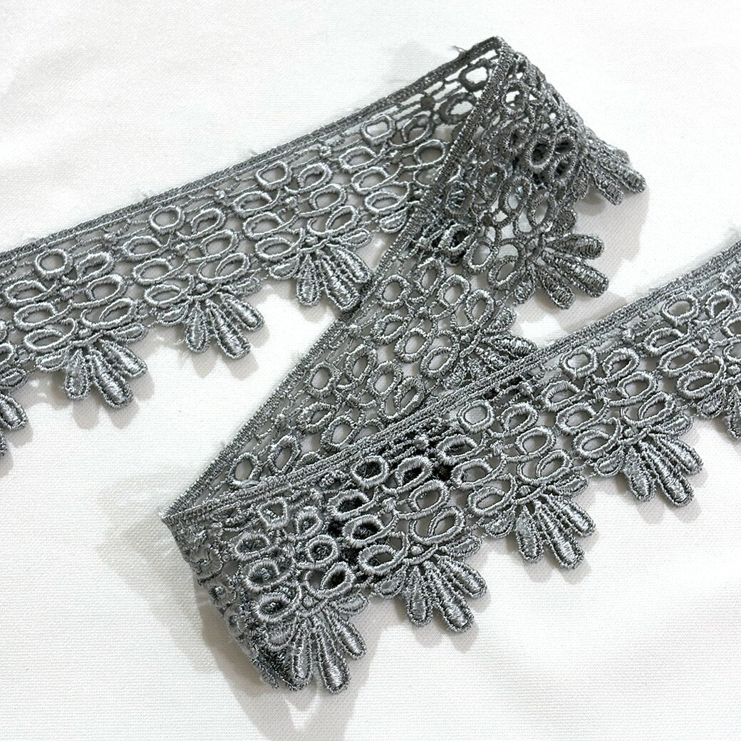 リボン【 モチーフレース H グレー 】レースリボン 刺繍リボン 刺繍 レース刺繍 刺繍テープ ハンドメイド資材 可愛い 手芸用テープ リボンテープ 洋裁 ハンドメイド 手芸用 パーツ 布雑貨 副材 手芸副材 フリル カントリ