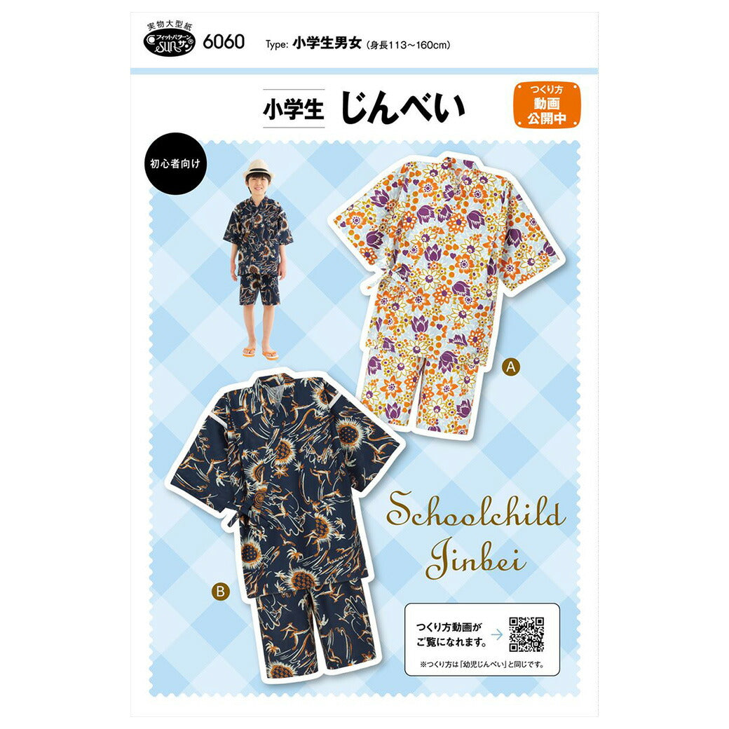型紙/パターン【 小学生じんべい 】甚平 夏祭り パジャマ ルームウェア 身長約113cm〜160cm 型紙のみ はじめての裁縫 ママ 手芸初心者 和服 和装 男女兼用 簡単 型紙セット Textile World TOA
