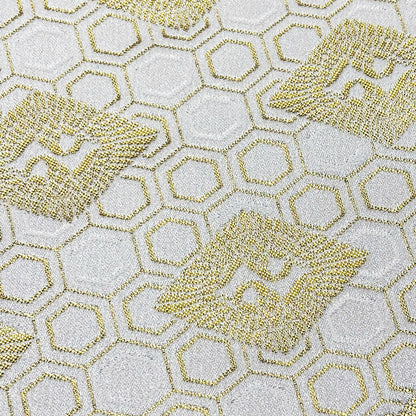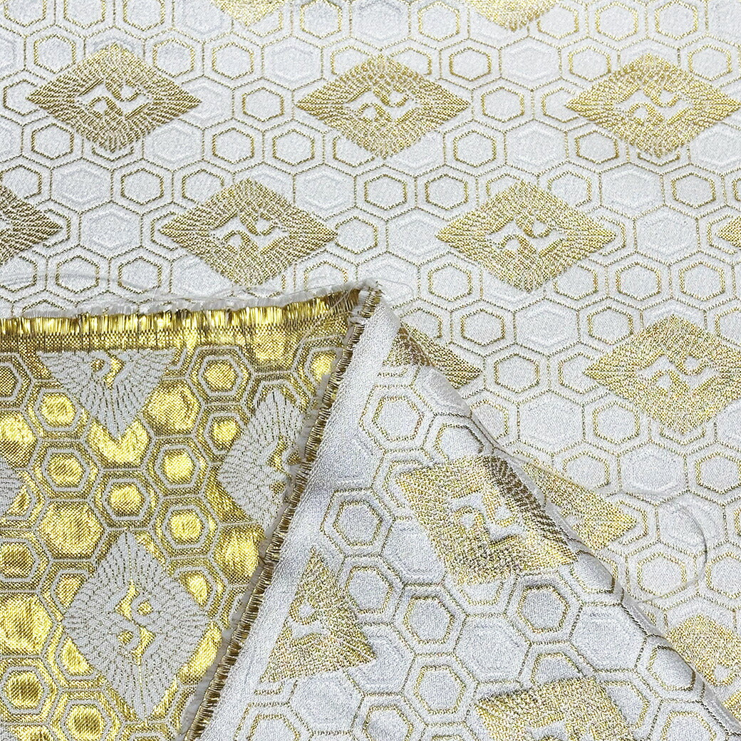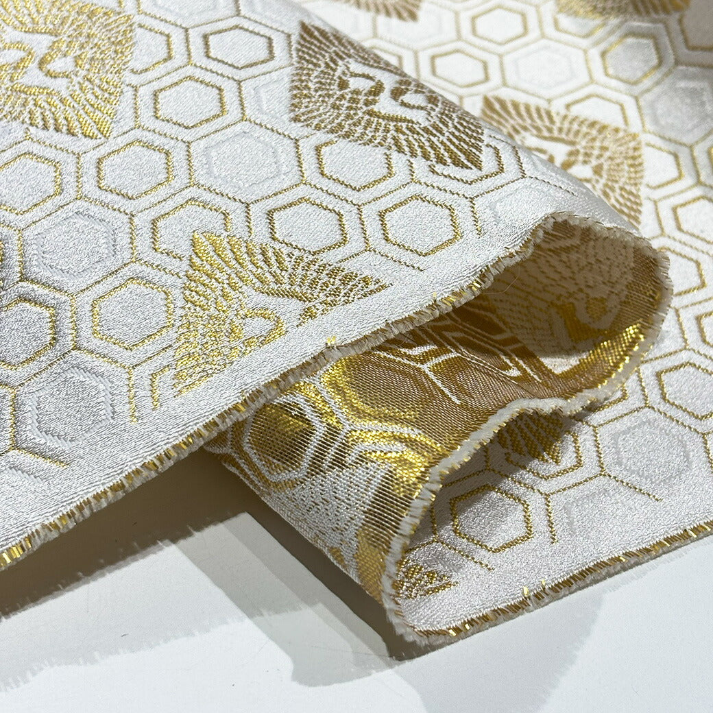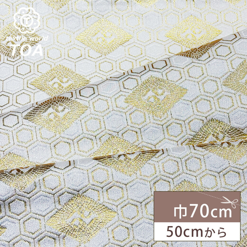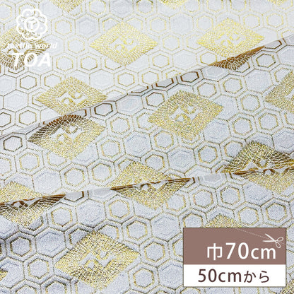 生地 【 金襴 三枡文 ホワイト 】 金襴生地 三枡文 亀甲文 幾何学模様 花びら 和柄 布 和柄生地 和風生地 京都西陣織 よさこい 金襴布 金襴 きんらん 仏具 座布団 つまみ細工 人形衣装 能衣装 袈裟 表装 掛け軸 御
