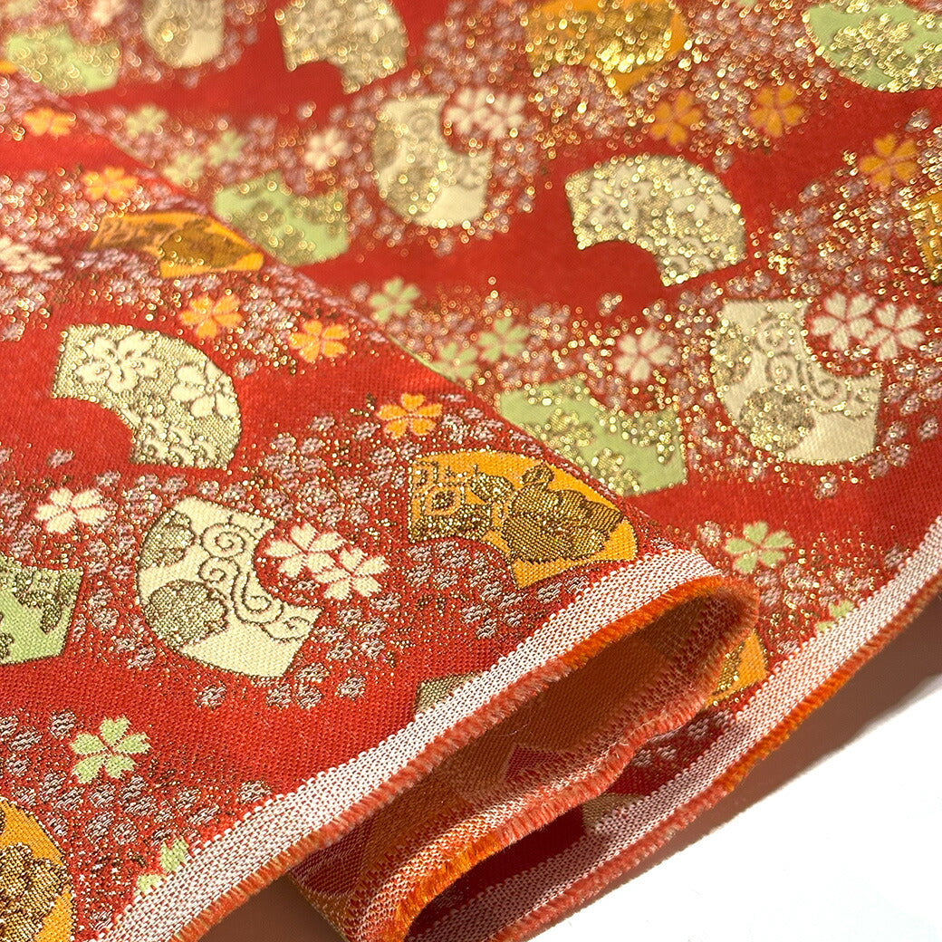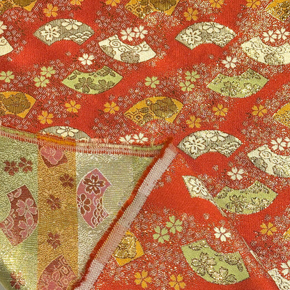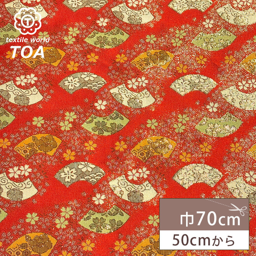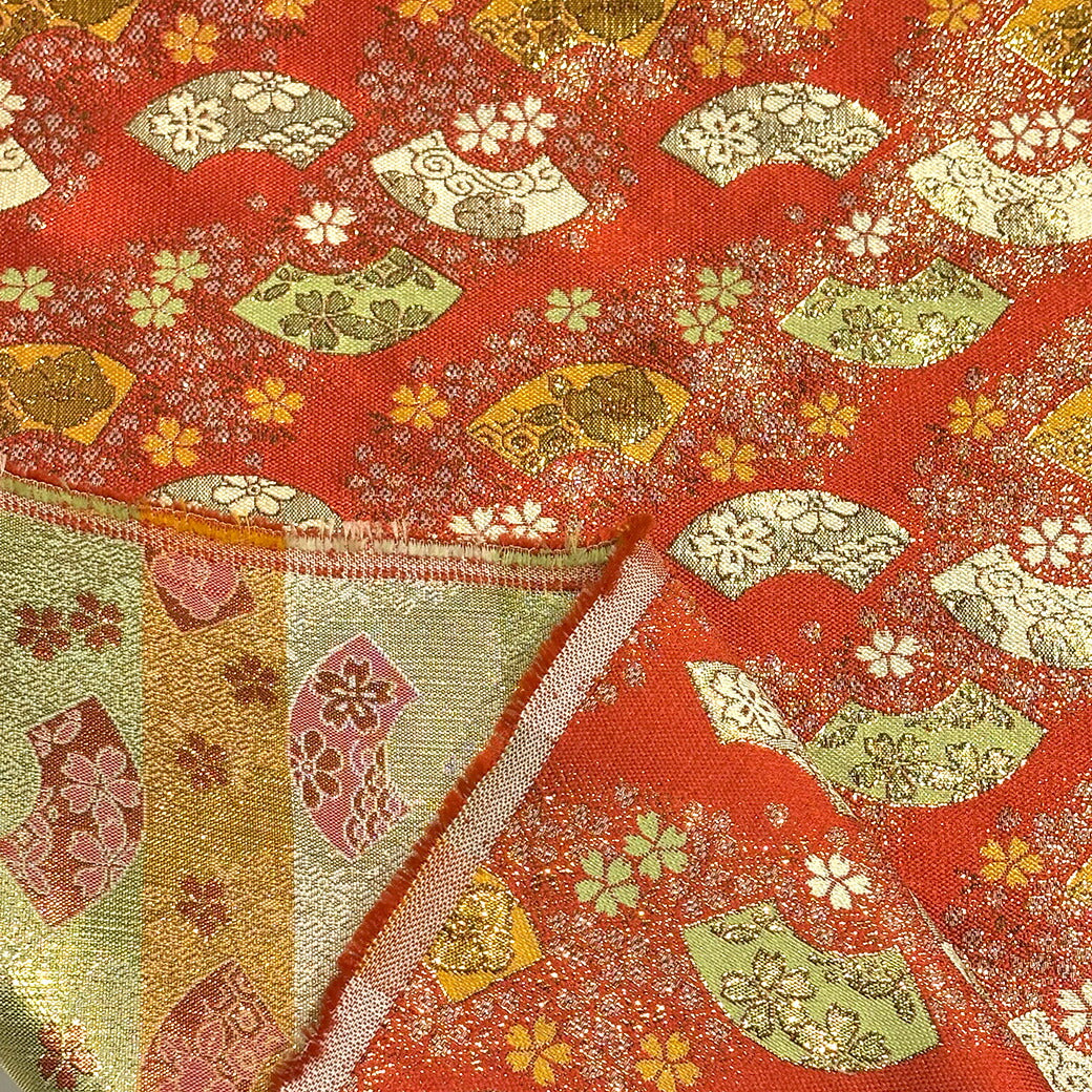 生地 【 金襴 扇面桜 レッド 】 金襴生地 斜取り扇面桜 扇 扇面 桜 華文 花びら 和柄 布 和柄生地 和風生地 京都西陣織 よさこい 金襴布 金襴 きんらん 仏具 座布団 つまみ細工 人形衣装 能衣装 袈裟 表装 掛け軸