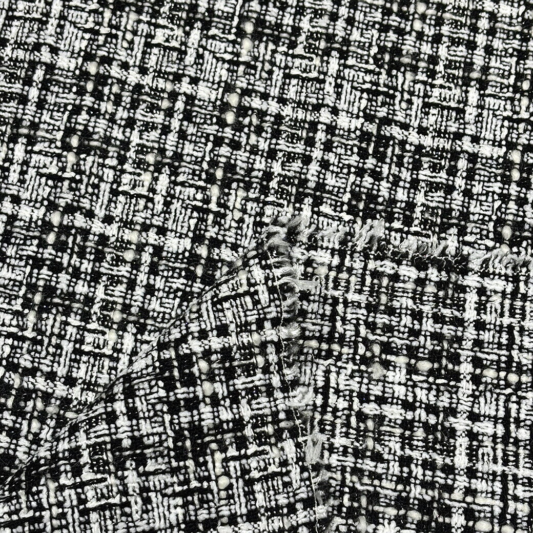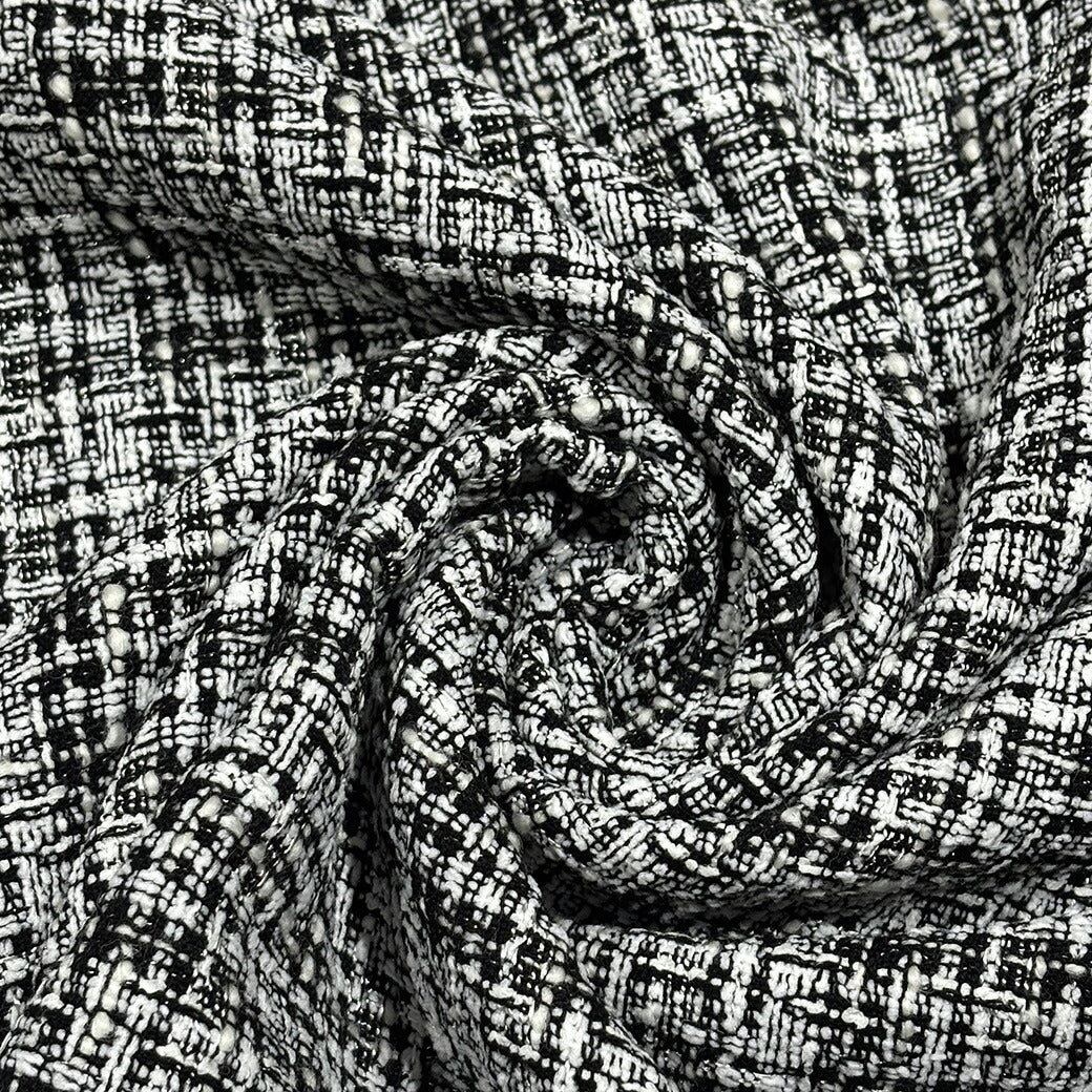 生地 【 インポート ファンシーツイード 白黒 】 ツイード生地 145cm巾 幅広 綿混 ジャケット コート スーツ ワンピース スカート パンツ 服地 バッグ 帽子 クッション インテリア 華やか エレガント 手作り 手芸 ハンドメイド Textile World TOA