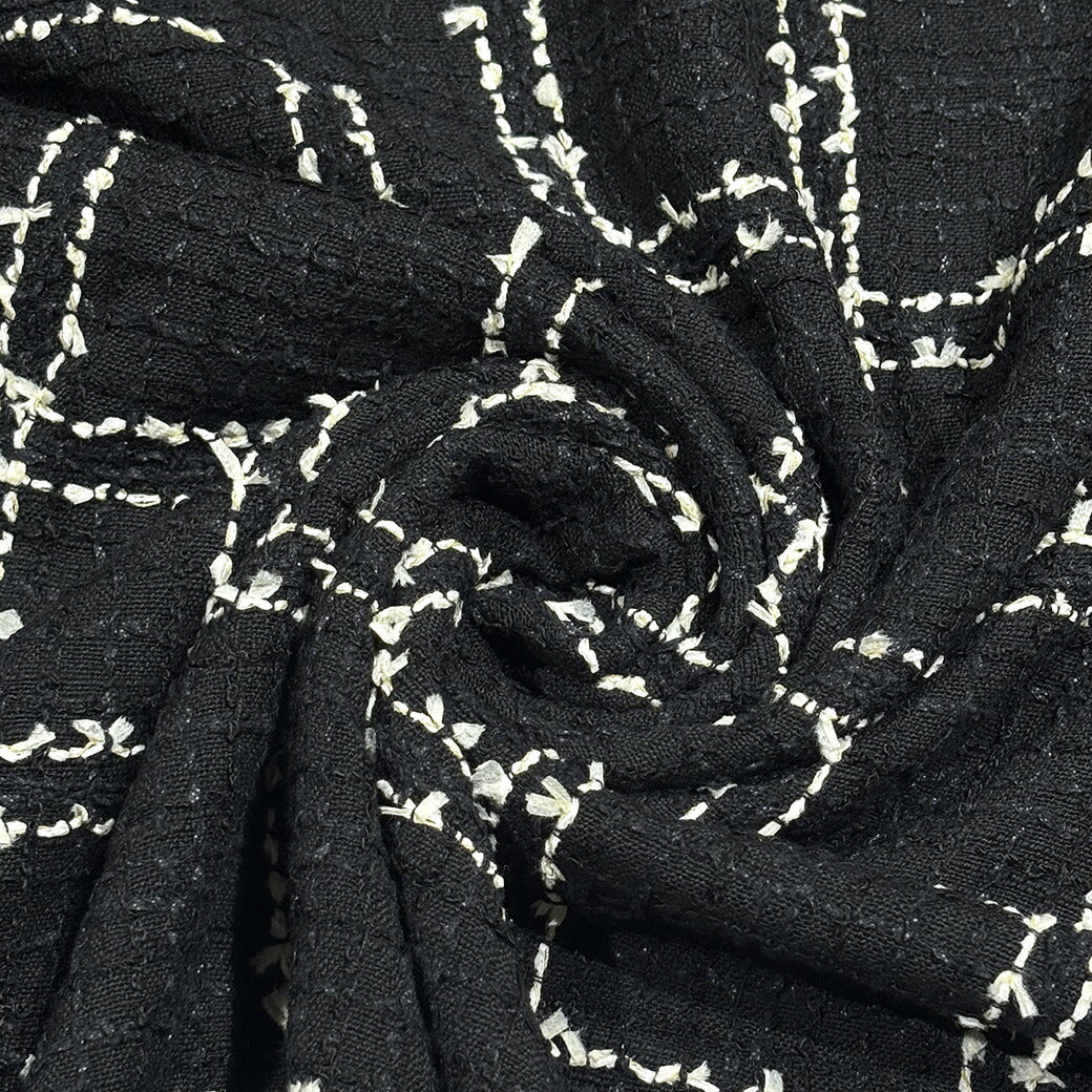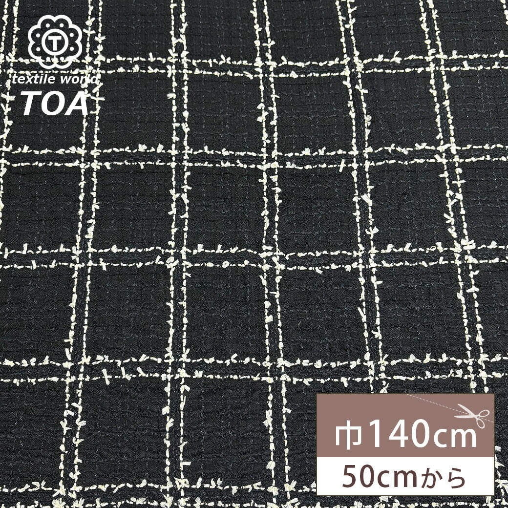 生地 【 インポート ファンシーツイード 黒 】 ツイード生地 140cm巾 幅広 綿混 ジャケット コート スーツ ワンピース スカート パンツ 服地 バッグ 帽子 クッション インテリア 華やか エレガント 手作り 手芸 ハンドメイド Textile World TOA