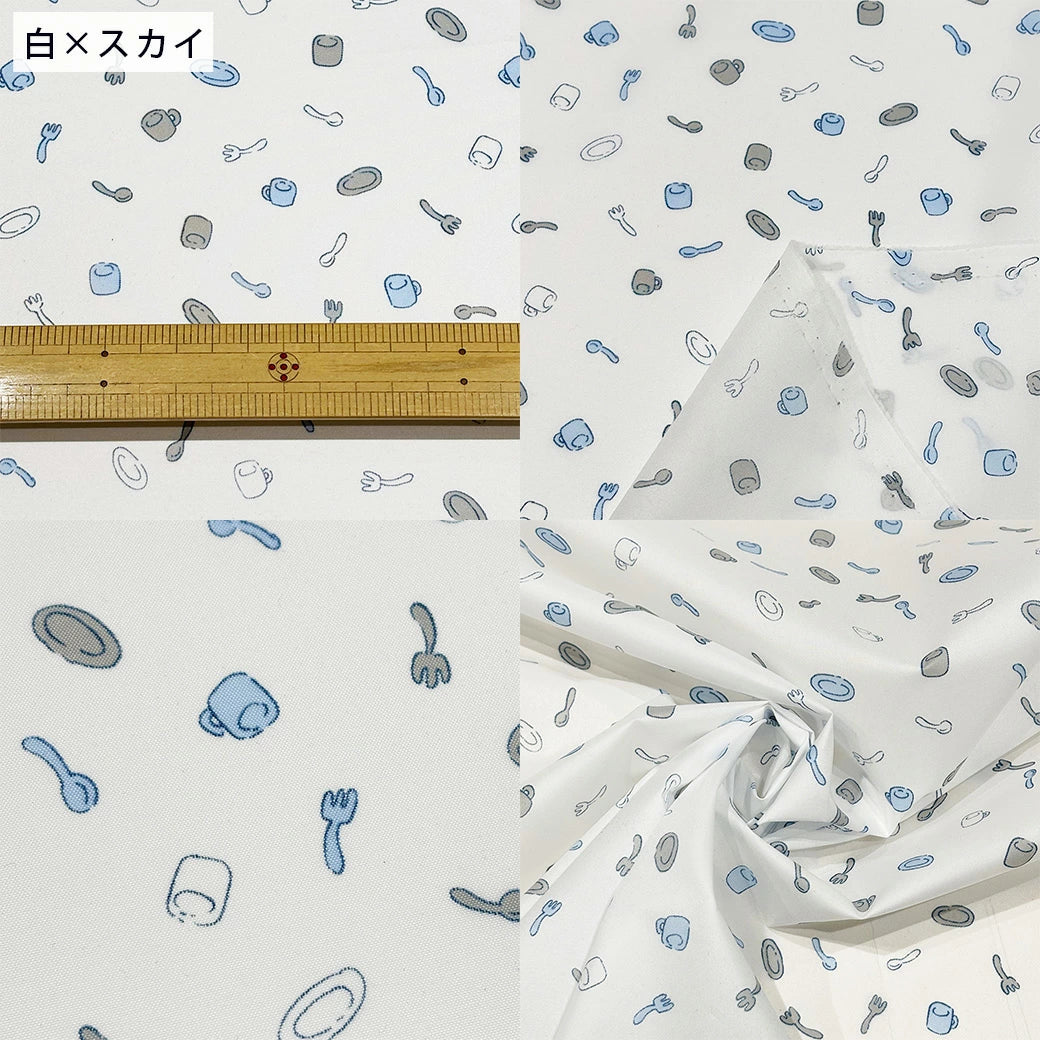 生地 【 撥水PT 食器 2色 】 撥水プリント 124cm巾 ポリエステル