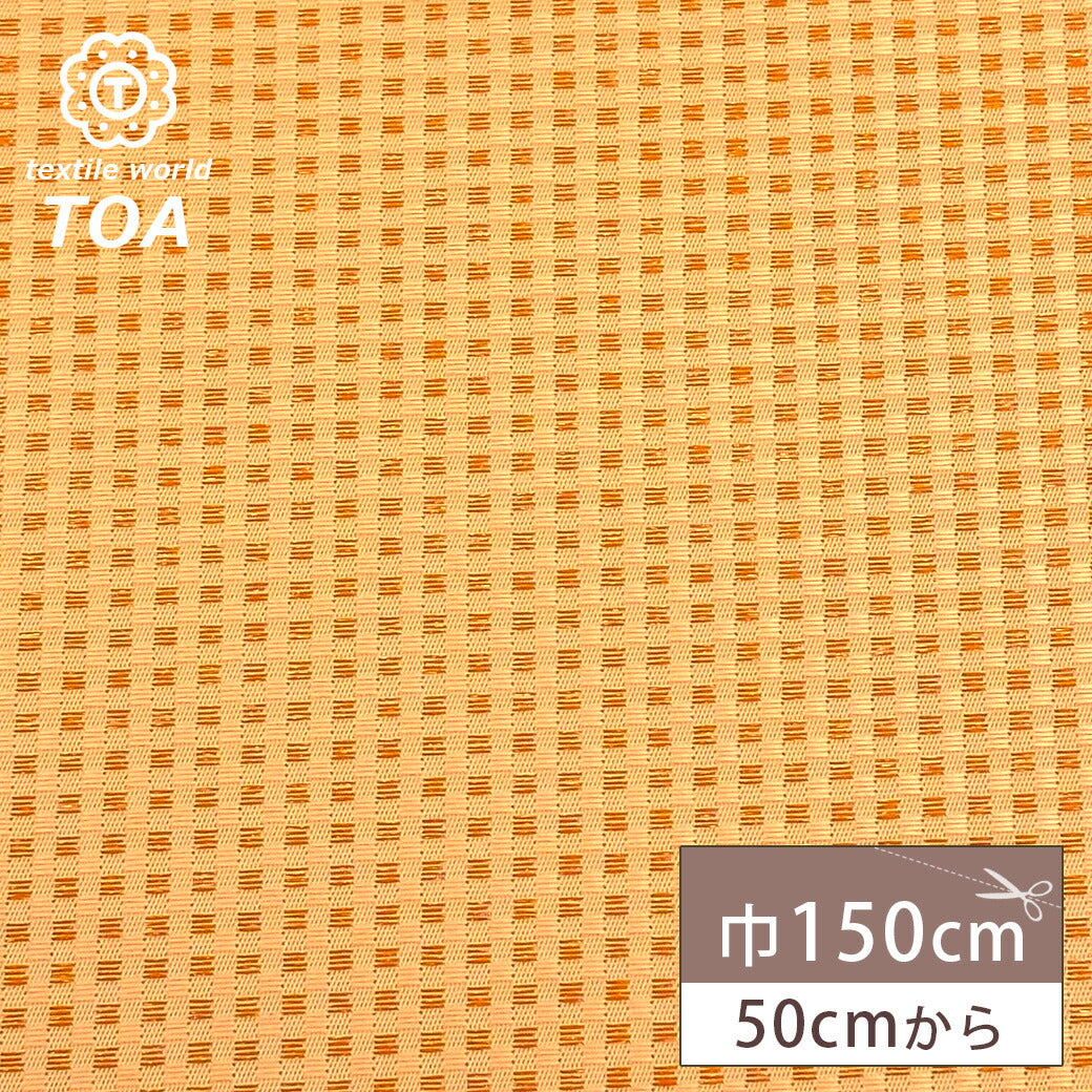生地【 サテンチェックジャガード オレンジ 】 ジャガード生地 ジャガード織り 150cm巾 幅広 ポリエステル チェック インテリア クッションカバー ポーチ バッグ 小物 テーブルクロス ディスプレイ ドレス カーテン ハンドメイド 手芸 Textile World TOA