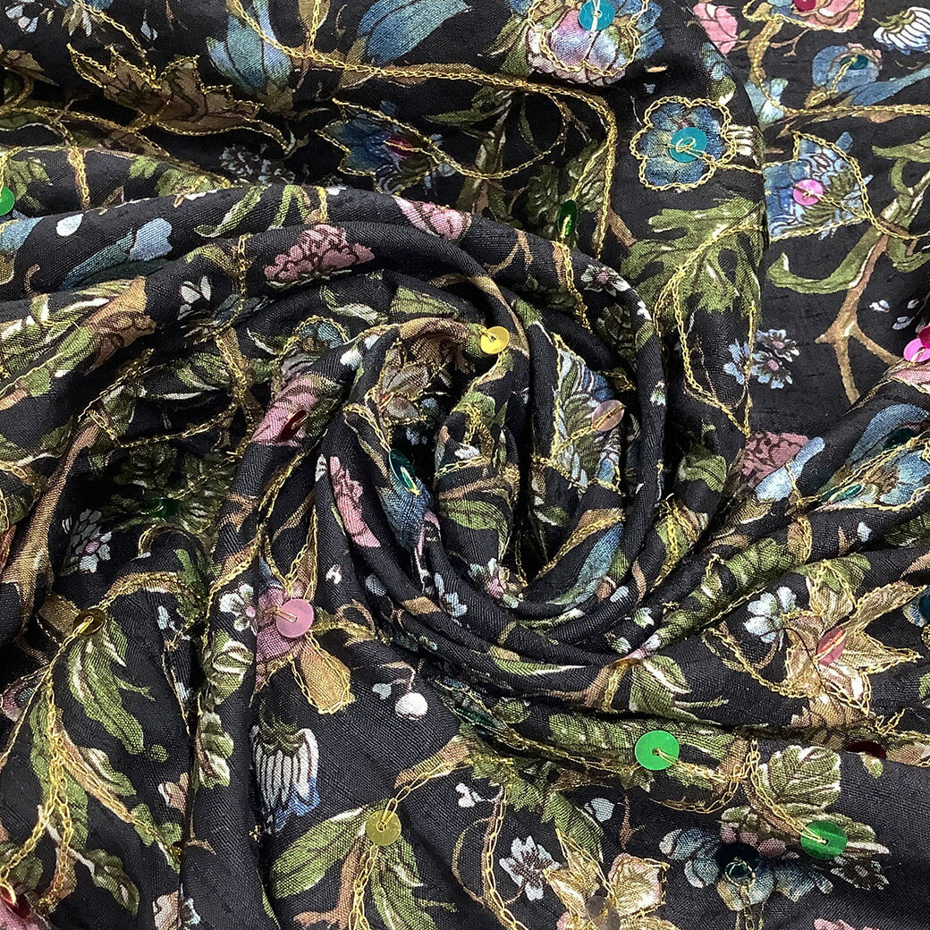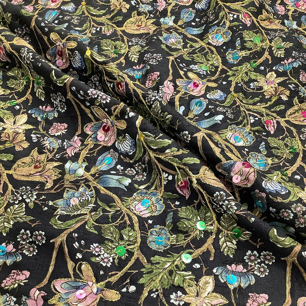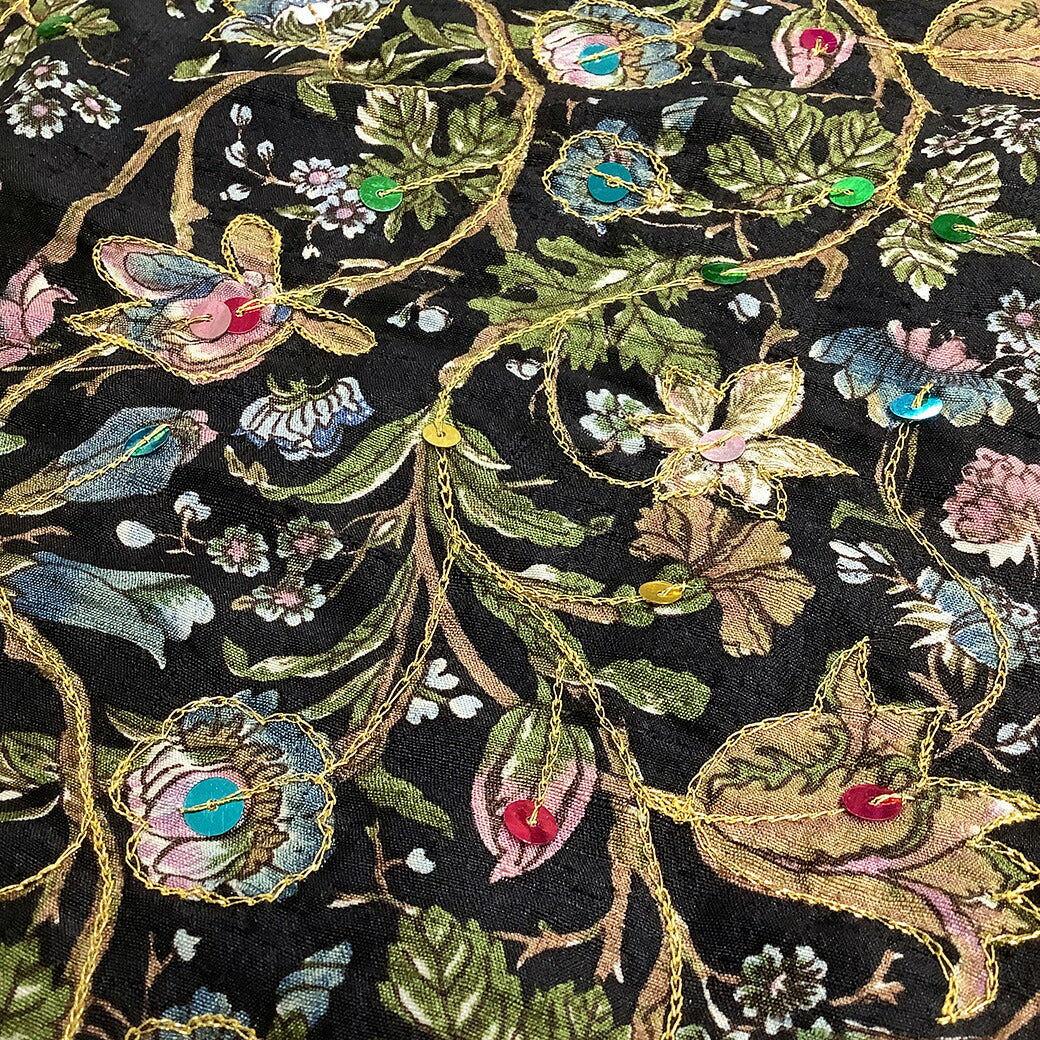 生地 【 シルク スパンコール フラワーネイビー 】 インドシルク 正絹 本絹 シルク生地 花柄 刺しゅう 刺繍生地 スパンコール キラキラ 民族衣装 サリー エスニック ベリーダンス アラブ衣装 伝統衣装 チョリ チュニック パンジャビ ダンス衣装 舞台衣装 Textile World TOA