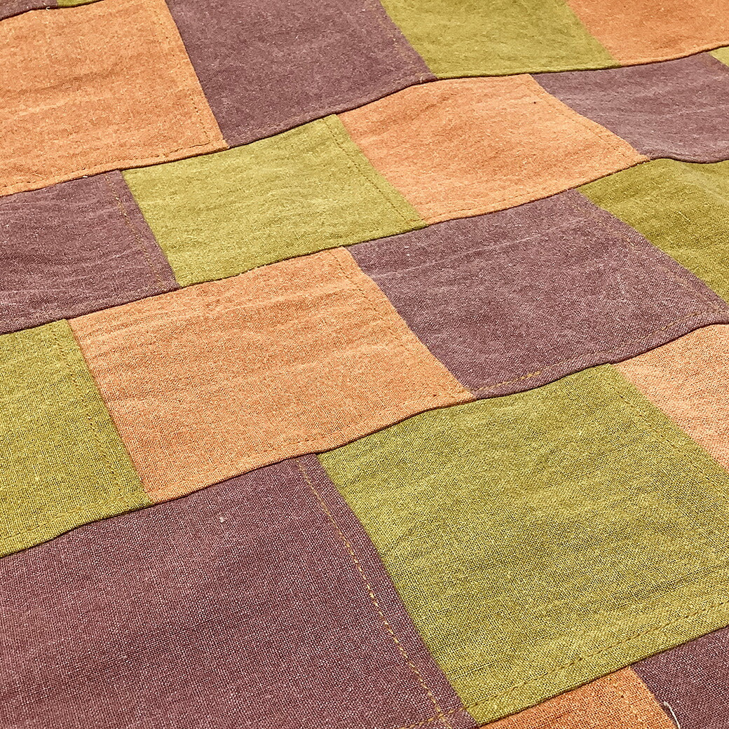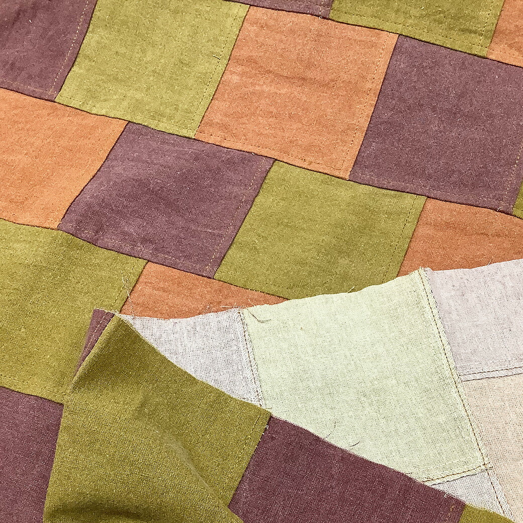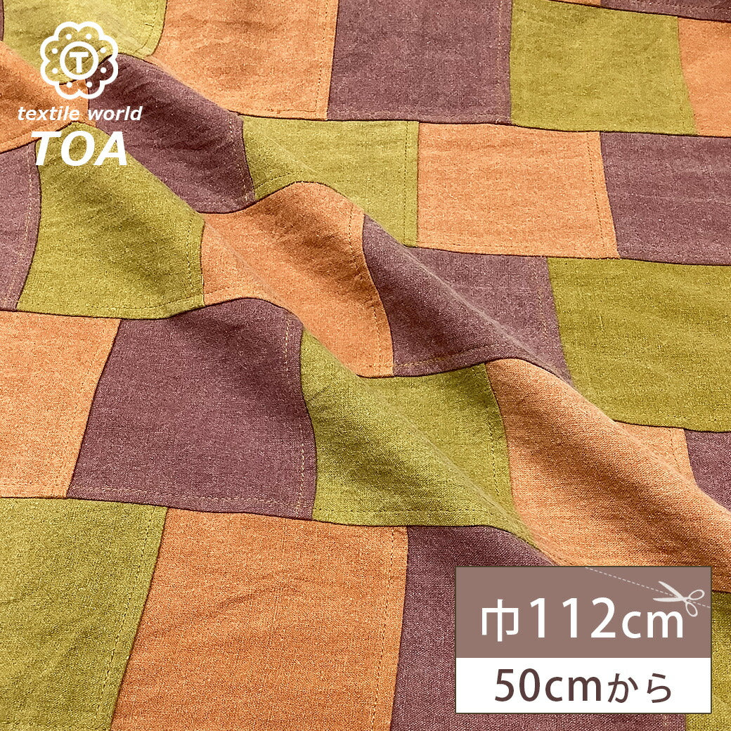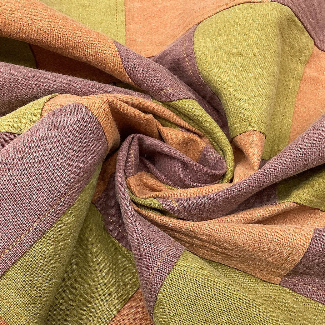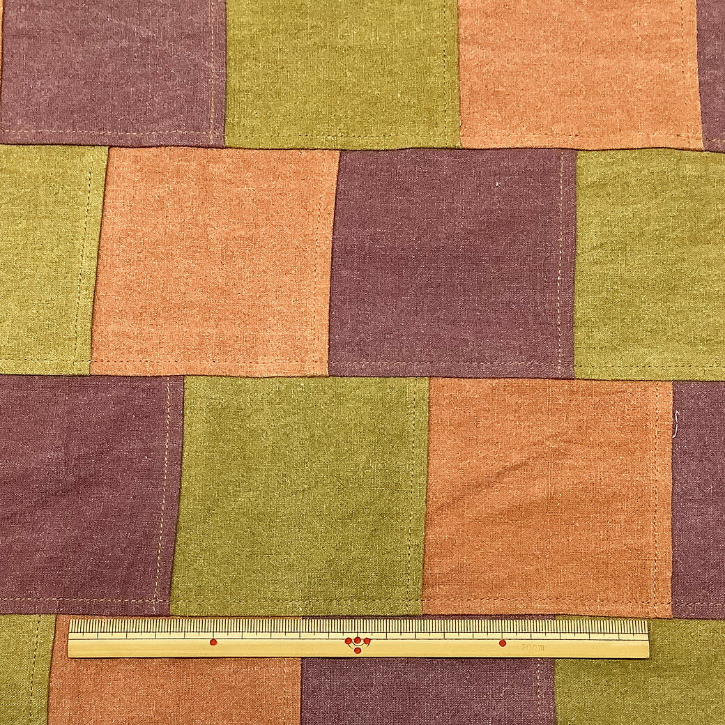 秋色カラーのデニム生地をつなげてパッチワーク風にしたデザイン。