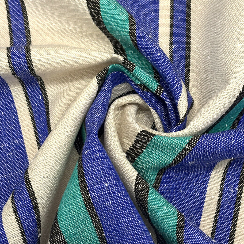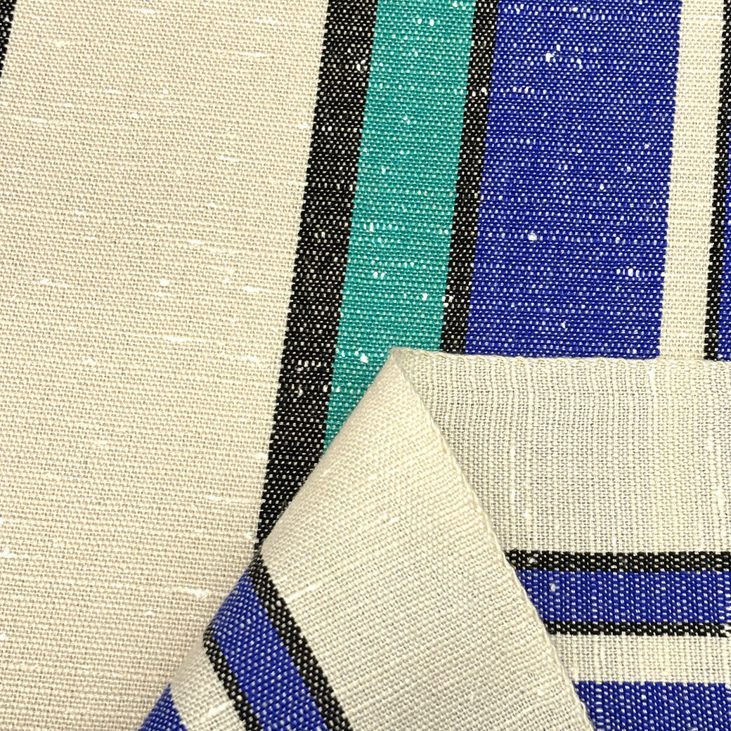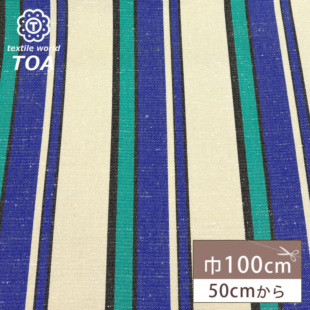 生地【 ネップ大柄ストライプ 生成ブルー 】ネップ入り生地 織物 模様 100cm巾 ポリエステル 布地 衣装 ストライプ インテリア クッションカバー スカート バッグ ポーチ 帽子 テーブルクロス ディスプレイ カーテン ハンドメイド 手芸 Textile World TOA