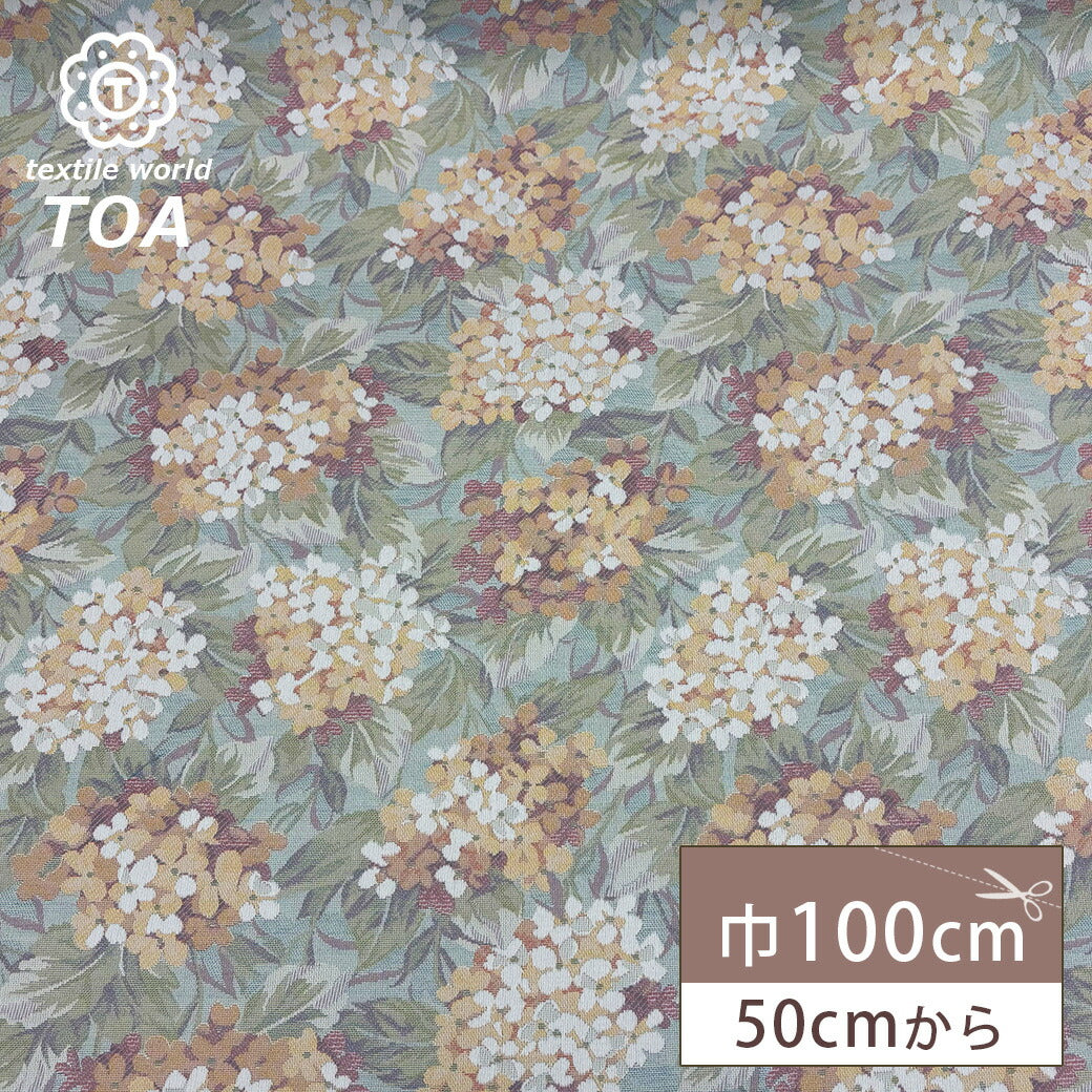 生地 【 ボタニカルゴブラン ミント 】 ゴブラン生地 ジャガード生地 ジャガード織り 金木犀 キンモクセイ ポリエステル 植物柄 インテリア クッションカバー スカート ポーチ バッグ テーブルクロス ディスプレイ 着物 帯 カーテン ハンドメイド 手芸 Textile World TOA