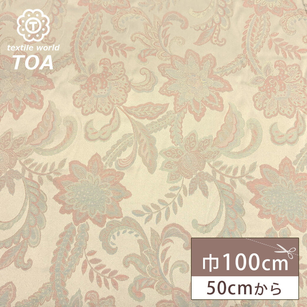 生地【 モチーフジャガード あずき 】ジャガード生地 ジャガード織り 100cm巾 ポリエステル 花柄 エスニック 布地 ジャケット 羽織り スカート ワンピース クッションカバー カーテン バッグ 巾着 小物入れ ハンドメイド 手芸 Textile World TOA
