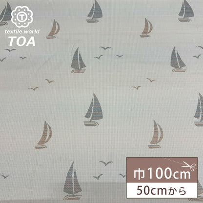 生地【 ヨットジャガード グリーン 】 ジャガード生地 ジャガード織り ゴブラン 織物 総柄 ヨット 船 衣装 インテリア ハンドメイド 手芸 クッションカバー スカート ポーチ バッグ 小物 テーブルクロス ディスプレイ 着物 帯 アンティーク カーテン Textile World TOA