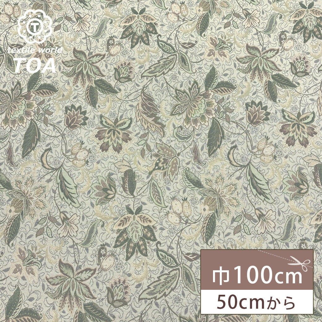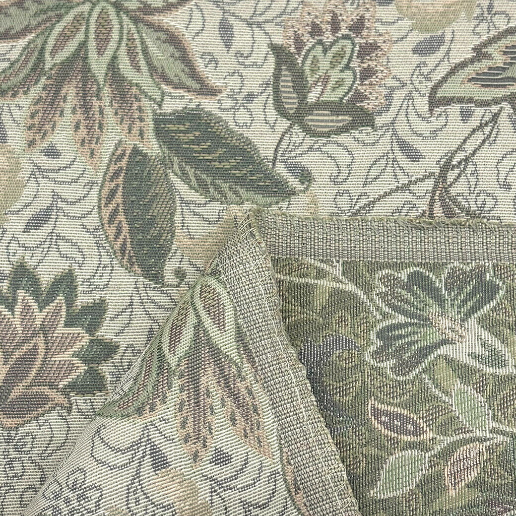 生地【 草木花ジャガード グリーン 】 ジャガード織り 100cm巾 ポリエステル