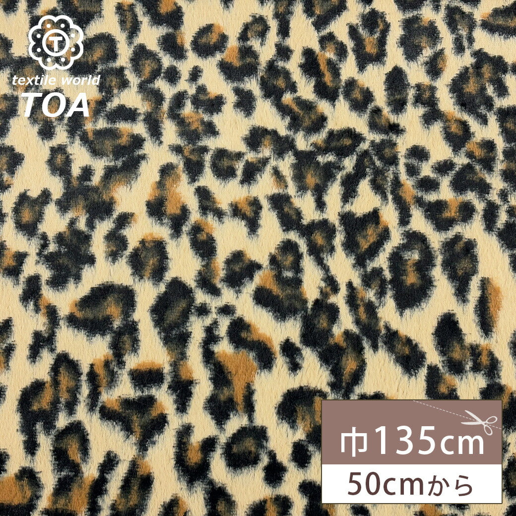 生地 【 アニマルソフトボア 茶 】 ベルボア生地 ボア ファー素材 アニマルボア アニマル柄 豹柄 ヒョウ柄 レオパード 合成毛皮 ふわふわ もこもこ 模造毛皮 動物柄 毛布 ぬいぐるみ クッションカバー スヌード グローブ ベスト ペット寝具 ハンドメイド Textile World TOA