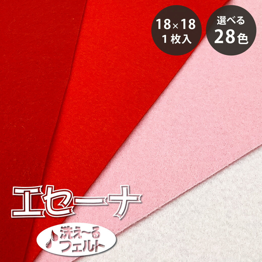 生地 【 エセーナ 洗えるフェルト 全28色 18×18 1枚入 赤系 】 カラーフェルト フェルト生地 教材用フェルト フエルト 洗える ウォッシャブル 工作 ハロウィン 仮装 コスプレ 衣装 おままごと ガーランド コースター コサージュ フォトフレーム ポーチ Textile World TOA