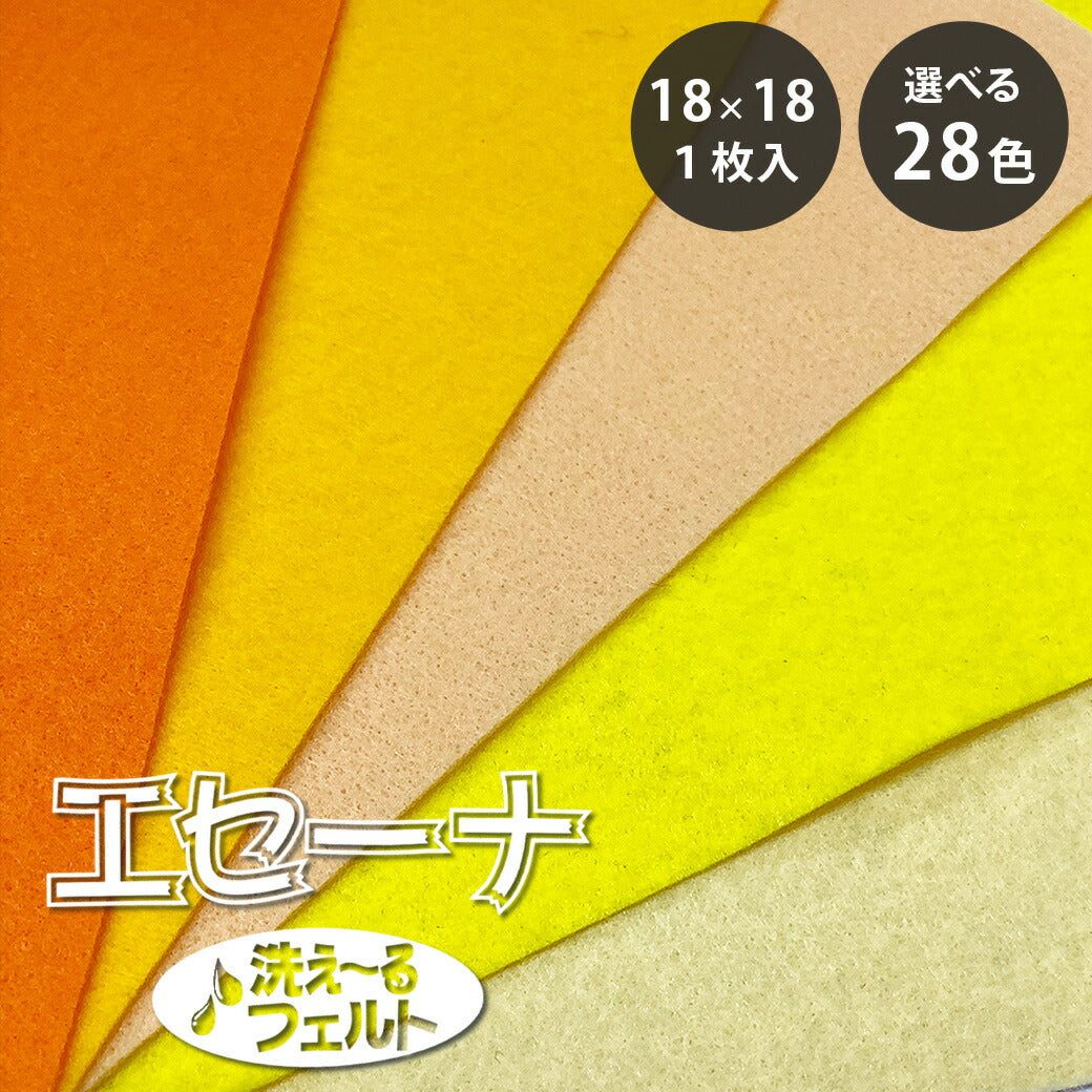 生地 【 エセーナ 洗えるフェルト 全28色 18×18 1枚入 黄系 】 カラーフェルト フェルト生地 教材用フェルト フエルト 洗える ウォッシャブル 工作 ハロウィン 仮装 コスプレ 衣装 おままごと ガーランド コースター コサージュ フォトフレーム ポーチ Textile World TOA
