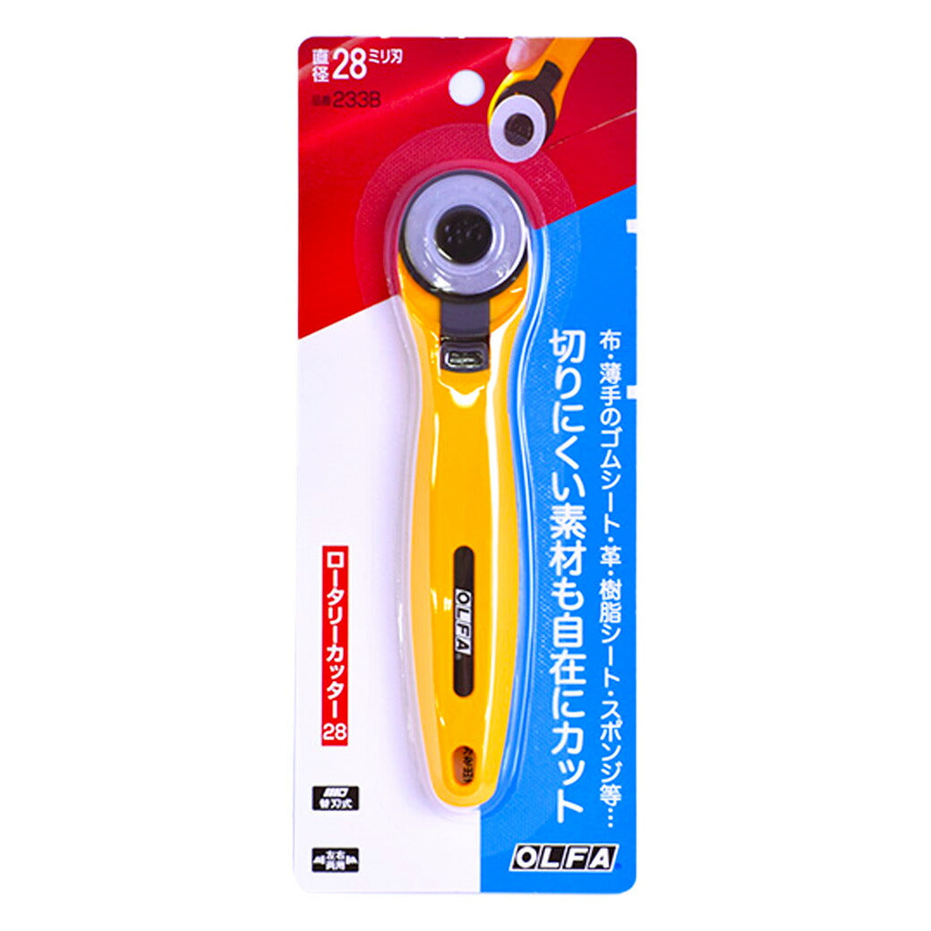 【 オルファ ロータリーカッター 28ミリ刃 233B 】手芸用カッター 直径28ミリ刃 裁断 生地裁断 簡単裁断 円形刃 カッティング カット 替刃式 布 ゴムシート DIY 工作 自由研究 レザー 革 レザークラフト 樹脂