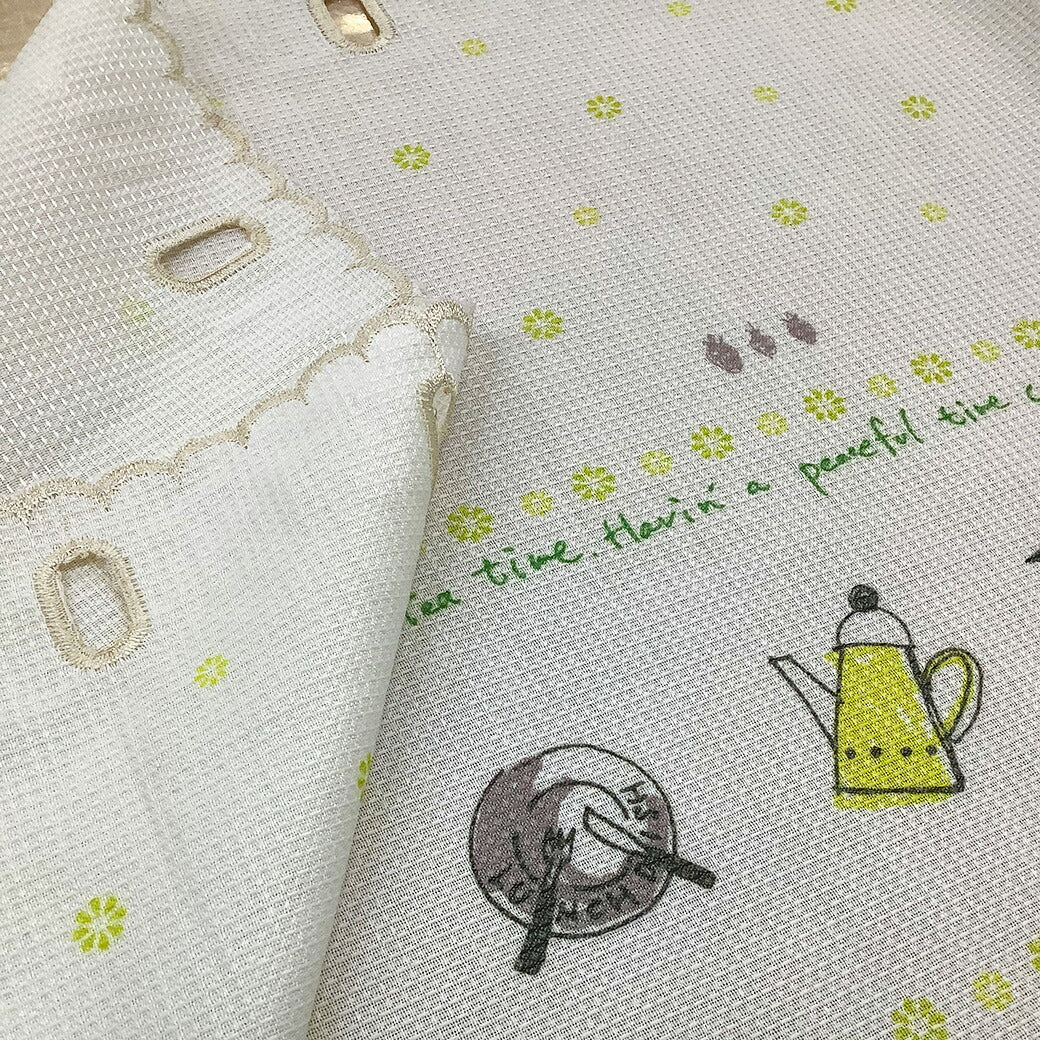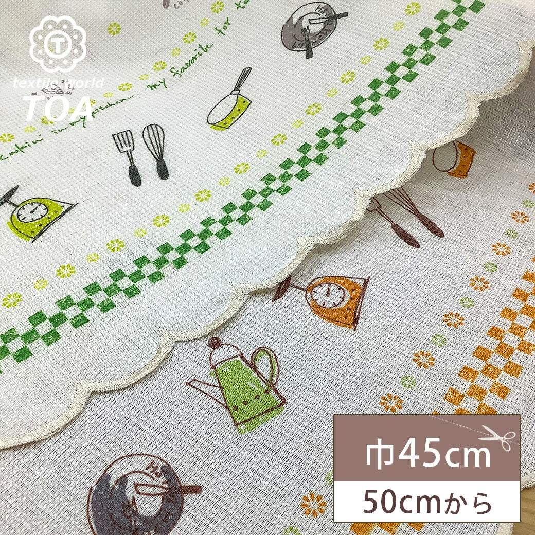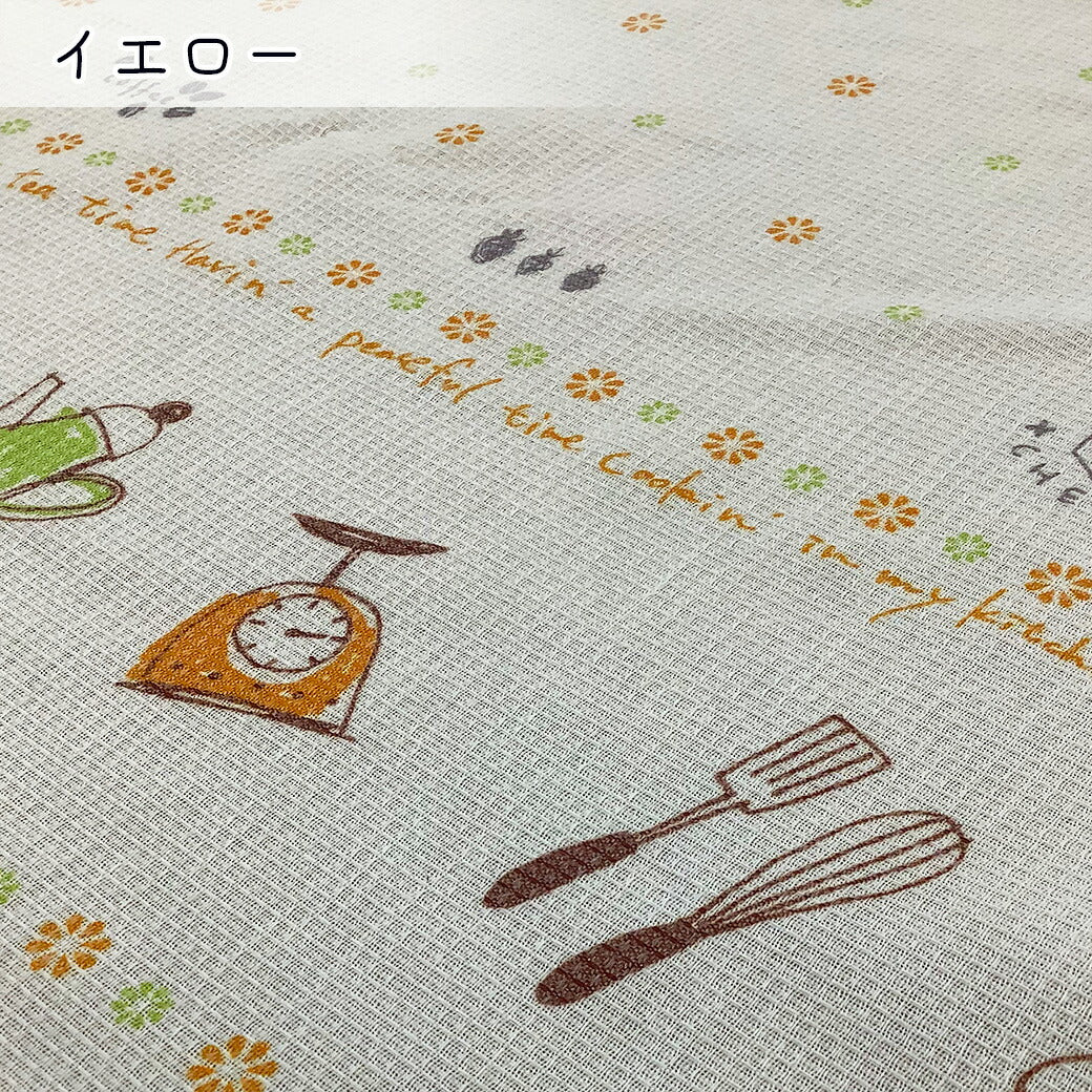 生地【 カフェカーテン キッチン道具 】カーテン レース レースカーテン カフェ お皿 ポット フライ返し 新生活応援 新居 引っ越し 1人暮らし キッチンカーテン 洗面所 インテリア 子ども部屋 ハンドメイド 布 暖簾 のれん おしゃれ 目隠しカーテン 緑 Textile World TOA