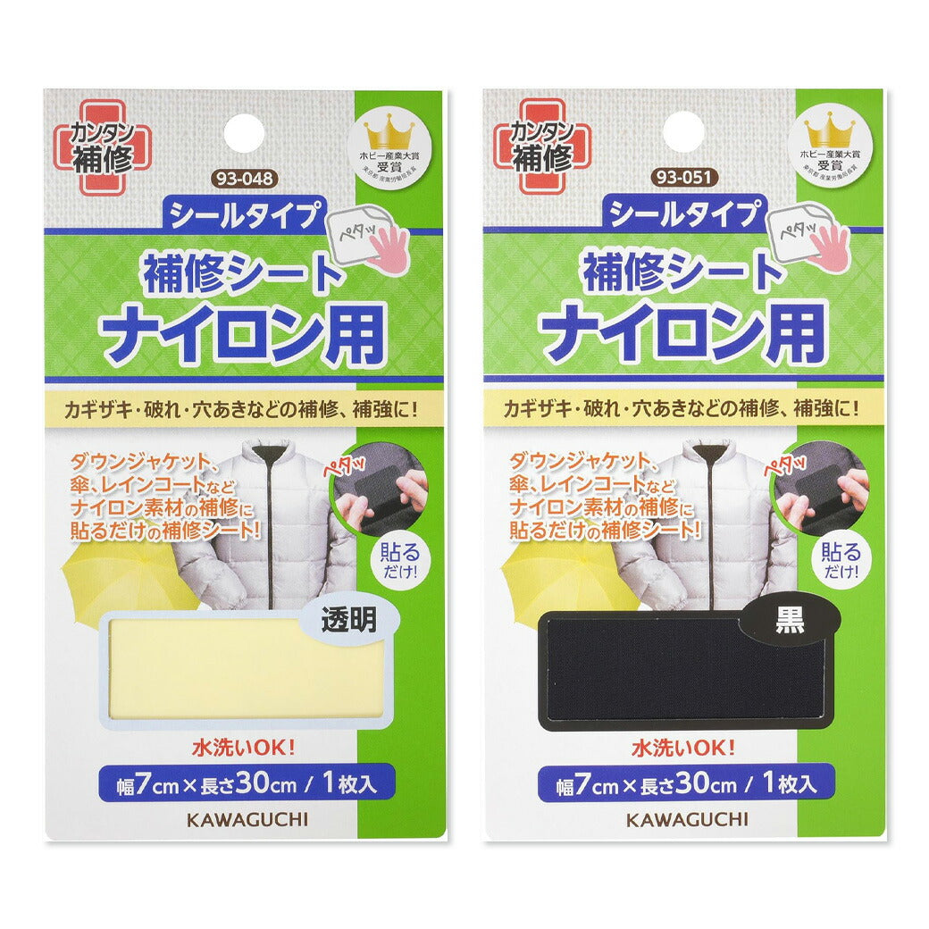 カワグチ 【 シールタイプ 補修シート ナイロン用 7cm×30cm 1枚入 】 補修シール 補修 補強 補強シート カギザギ 貼るだけ 貼るタイプ 簡単補修 簡単 初心者 ナイロン用 破れ補修 穴あき 水洗い可 ダウン 傘 レインコート ナイロン素材 ソーイング 手芸 裁縫道具 KAWAGUCHI