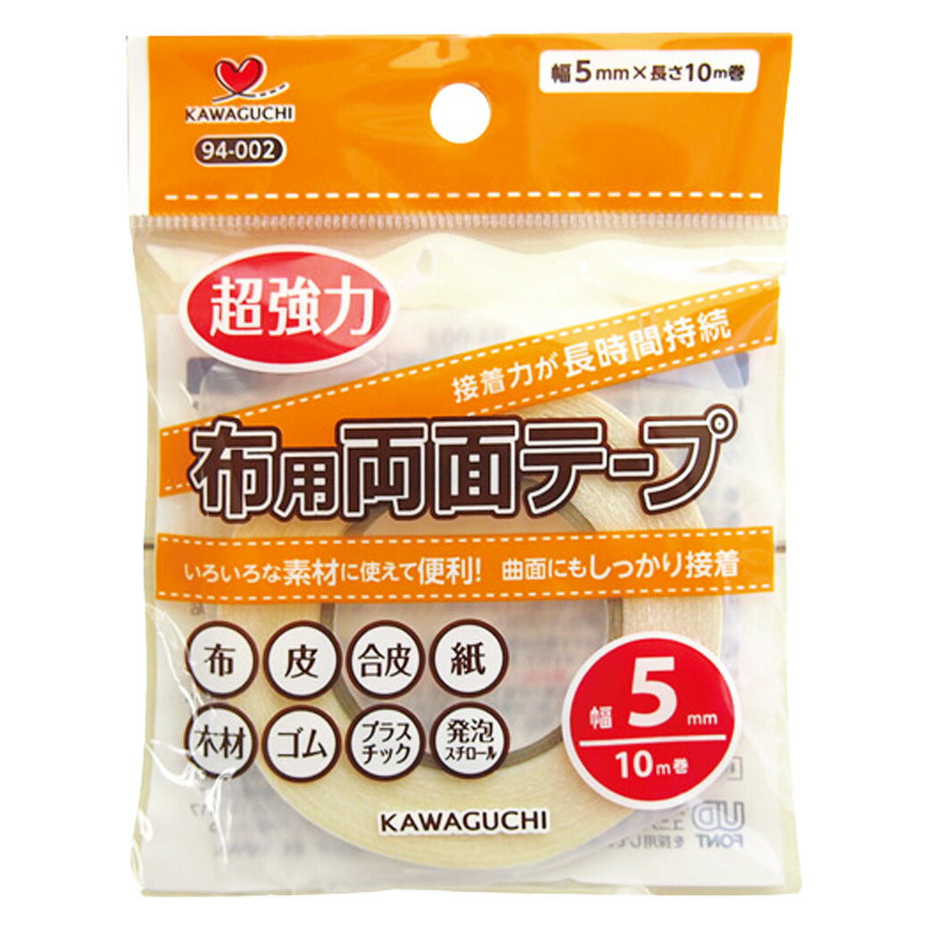 カワグチ【 超強力布用両面テープ 5mm幅 】KAWAGUCHI 両面テープ 強力テープ 強力接着 布用接着剤 簡単接着 簡単 初心者 布 皮 革 紙 木材 ゴム プラスチック DIY 発泡スチロール 裾上げテープ 手芸副材 ソーイング 手芸用品 ノーション ハンドメイド Textile World TOA