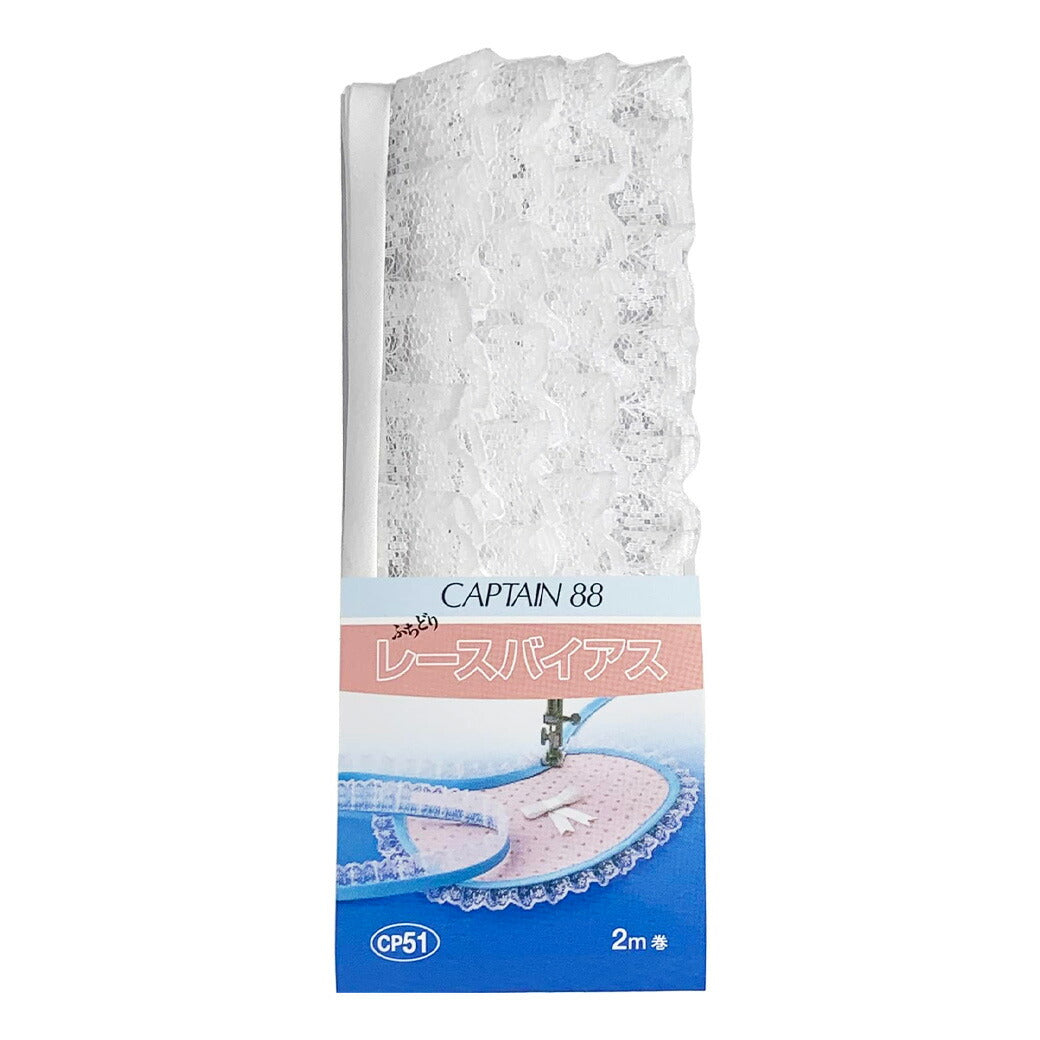 【 キャプテン ふちどりレースバイアス 2m巻 ホワイト 】 ふちどりテープ バイアス テープ 24mm 2m巻 レーステープ フリル バイアステープ バイヤス バイアス キャプテン フリフリ 襟 ハンカチ ハンドタオル ポー