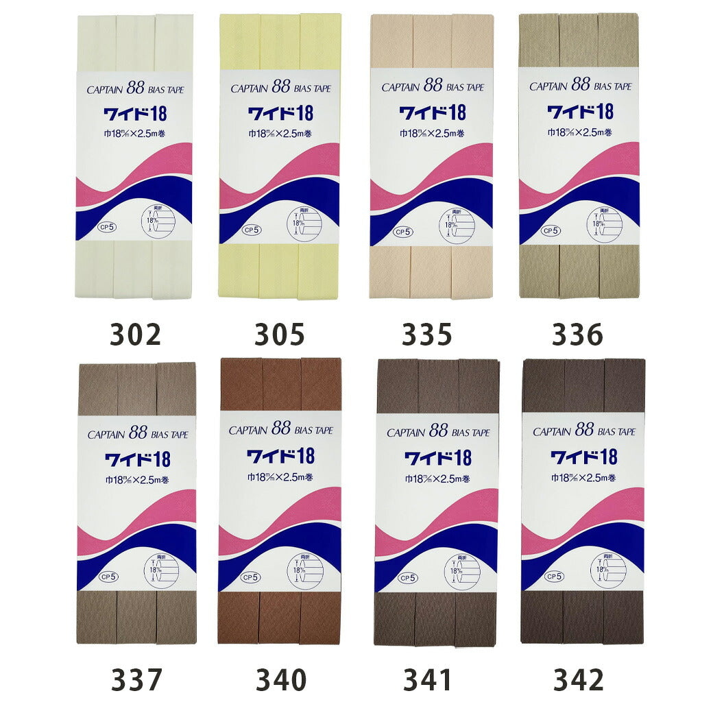 バイアステープ 【 キャプテンバイアステープ ワイド18 両折タイプ 】ふちどりテープ 18mm 2.5巻 バイアステープ バイヤス バイアス キャプテン CAPTAIN 幅 エプロン ランチョンマット バッグ ベビー ハンド