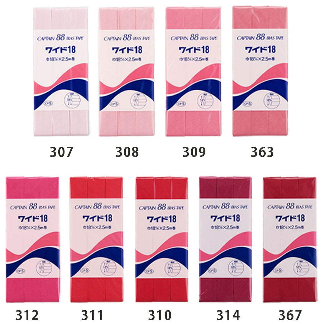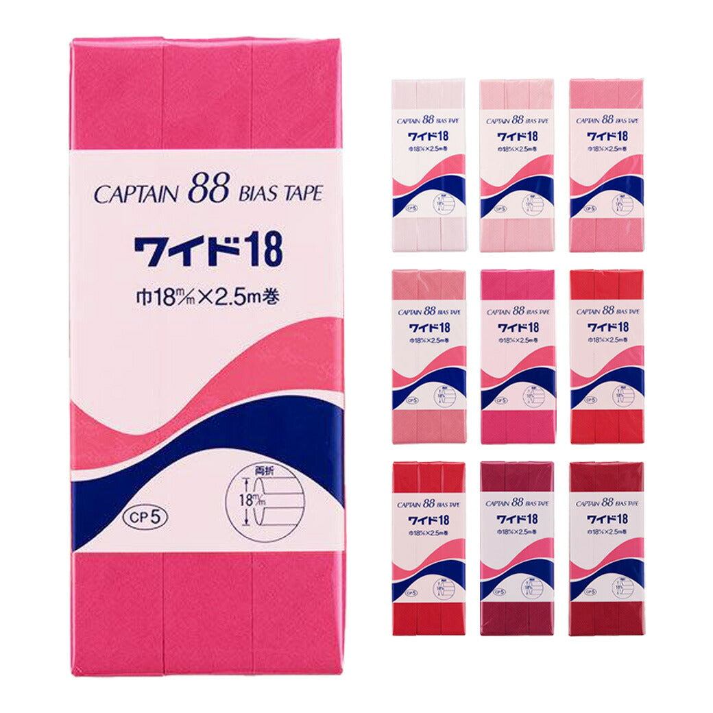 バイアステープ 【 キャプテンバイアステープ ワイド18 両折タイプ 赤系 】ふちどりテープ 18mm 2.5巻 バイアステープ バイヤス バイアス キャプテン CAPTAIN 幅 エプロン ランチョンマット バッグ ベビー