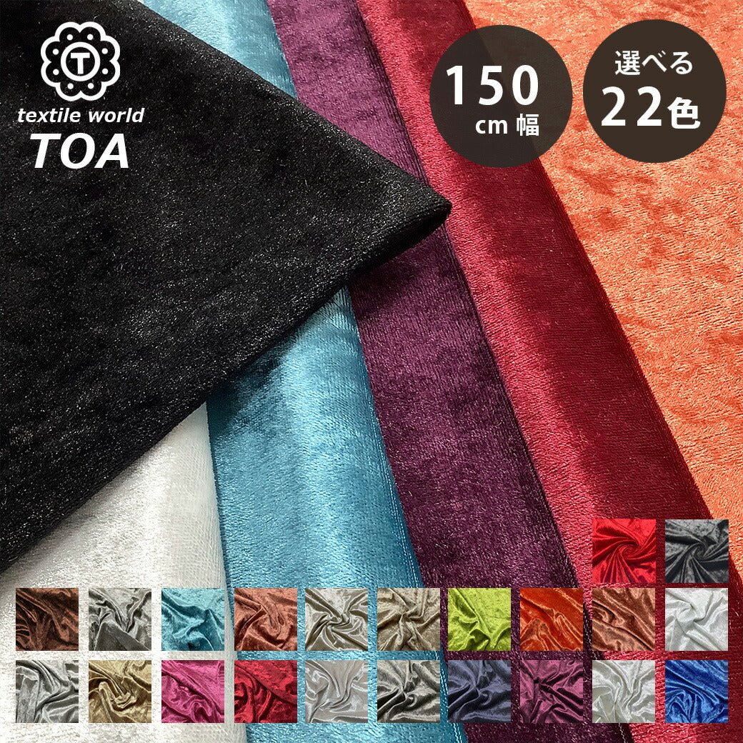 生地 【 クラッシュベロア 22色 】 ベロア生地 ベルベット 150cm巾 幅広 無地 ポリエステル