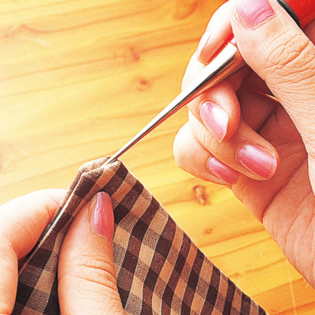 カドを整える、ミシンがけの時に布を送る、糸をほどく…など細かい作業に使います。