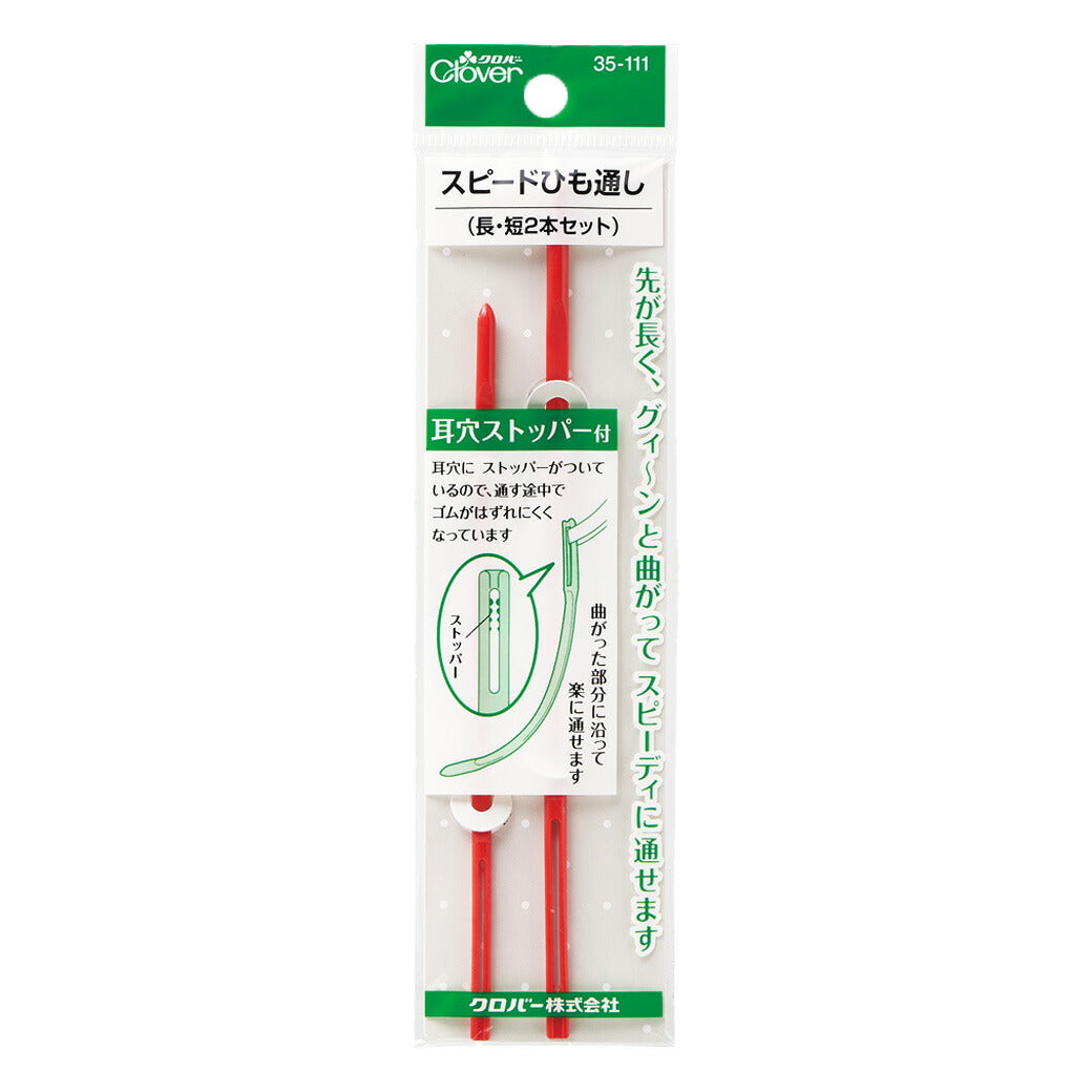 【 クロバー スピードひも通し (長・短2本セット) 35-111 】 ひも通し 2本入 ゴム通し 紐通し ヒモ通し スカートゴム バッグ 袖口 小物 袋物 clover ウエスト スカート パンツ ソーイング 洋裁 補修