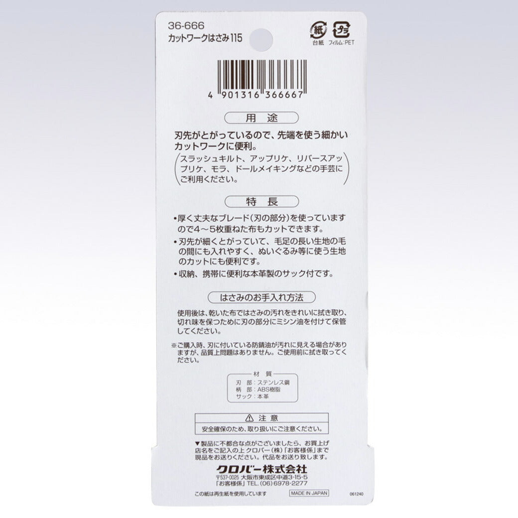 クロバー 【 カットワークはさみ 36-666 】 ハサミ 手芸鋏 裁縫鋏 裁縫ばさみ 裁ち鋏 ループカット パンチニードル ニードルパンチ 羊毛フェルト フェルト細工 刺しゅう 刺繍 ミシン用品 つまみ細工 手仕事 洋裁 ソ