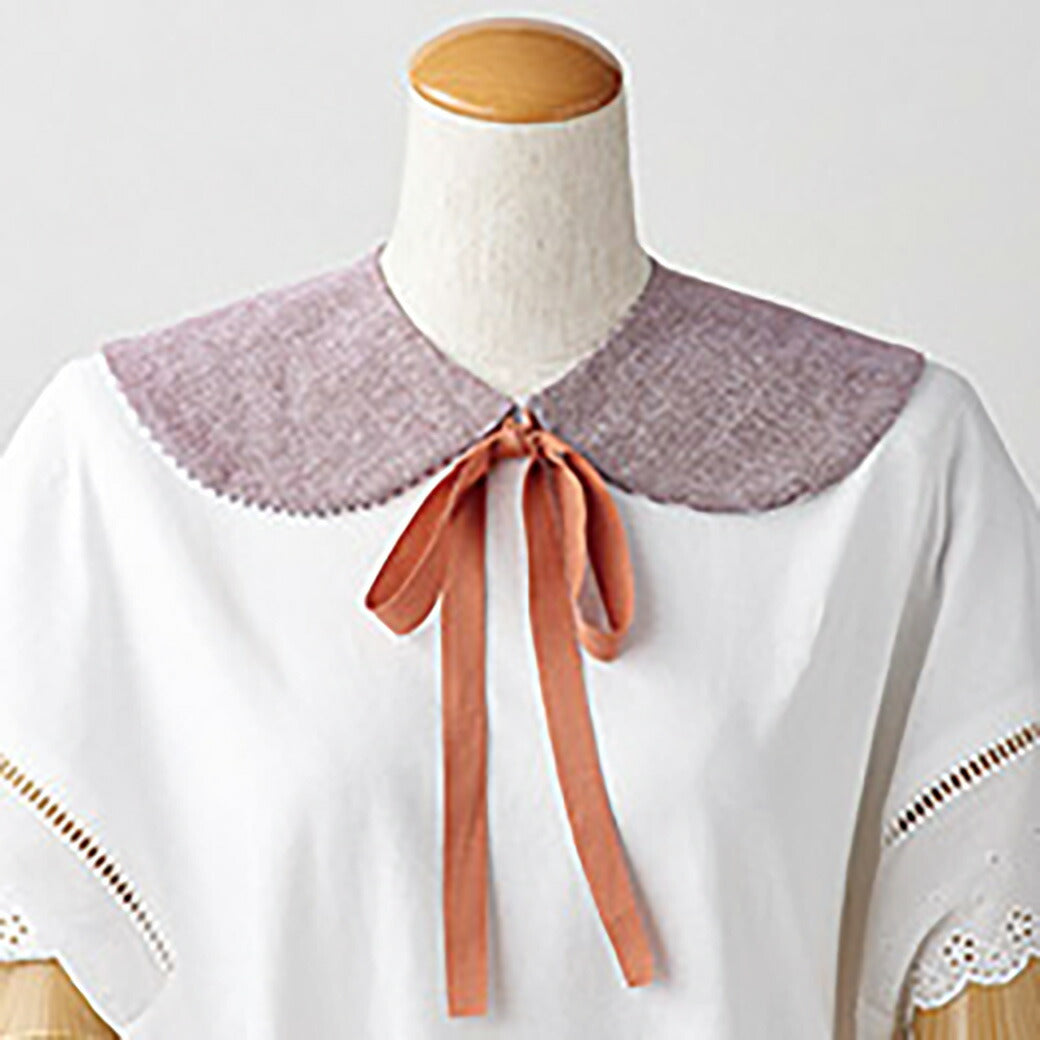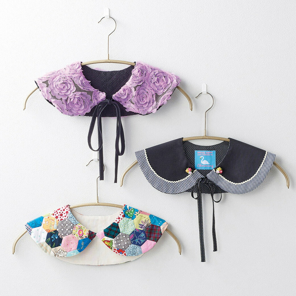 フリルで縁を飾ったり、バイアステープで縁取ったり、フェイクファーなどで作ったり、着なくなったお洋服から作り変えもアレンジ自在、お好みの布で付け襟づくりができます。