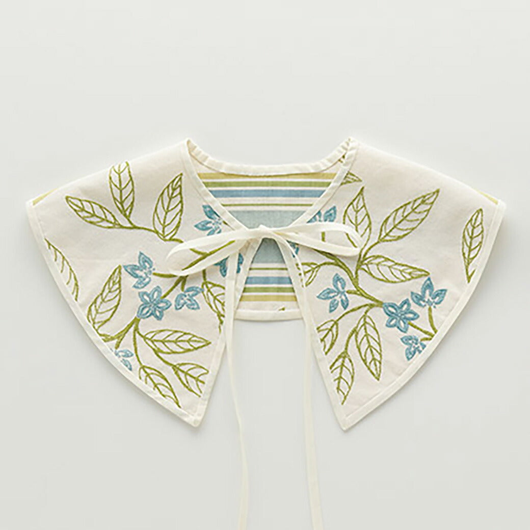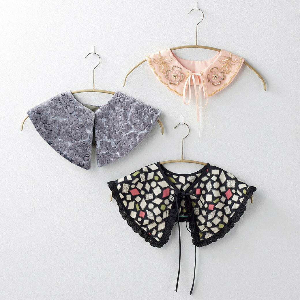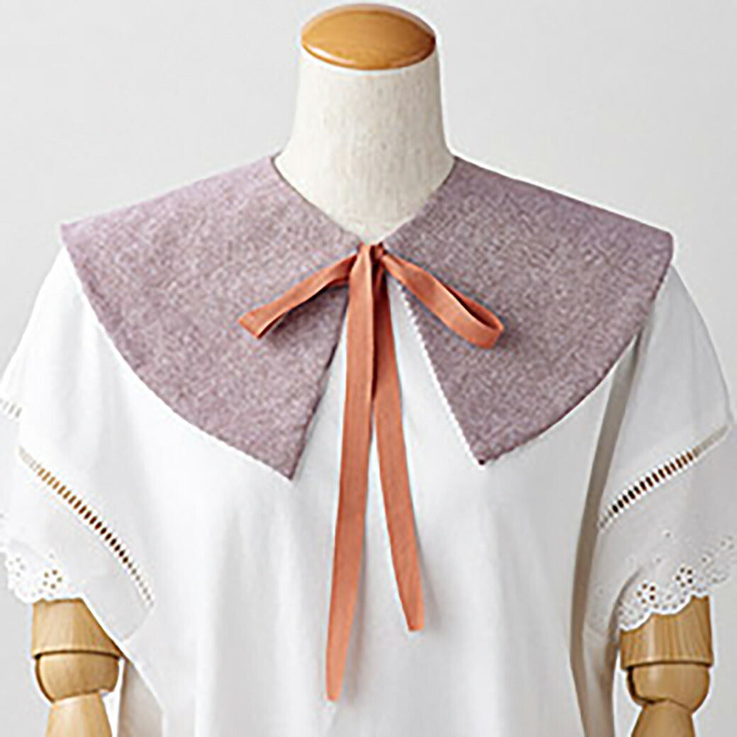 フリルで縁を飾ったり、バイアステープで縁取ったり、フェイクファーなどで作ったり、着なくなったお洋服から作り変えもアレンジ自在、お好みの布で付け襟づくりができます。