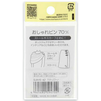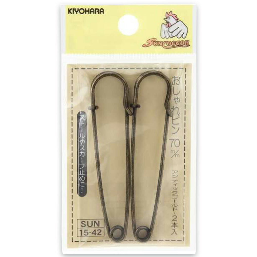 清原 【 サンコッコー おしゃれピン 70mm 2本入 アンティックゴールド SUN15-42 】裁縫道具 おしゃれピン アクセサリー 傷めない 布 スカーフ ブローチ コサージュ 入園 入学 入園式 卒園式 フォーマル 制服