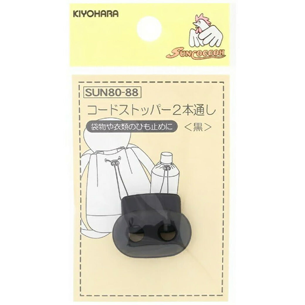 【 サンコッコー コードストッパー 2本通し 黒 SUN80-88 】 コードロック パーツ 2本通し 1本通し 紐 止め 紐止め ハンドメイド 紐止め 袋物 巾着袋 体操服袋 リュックサック 絞り 入園 入学 給食袋 ナップ