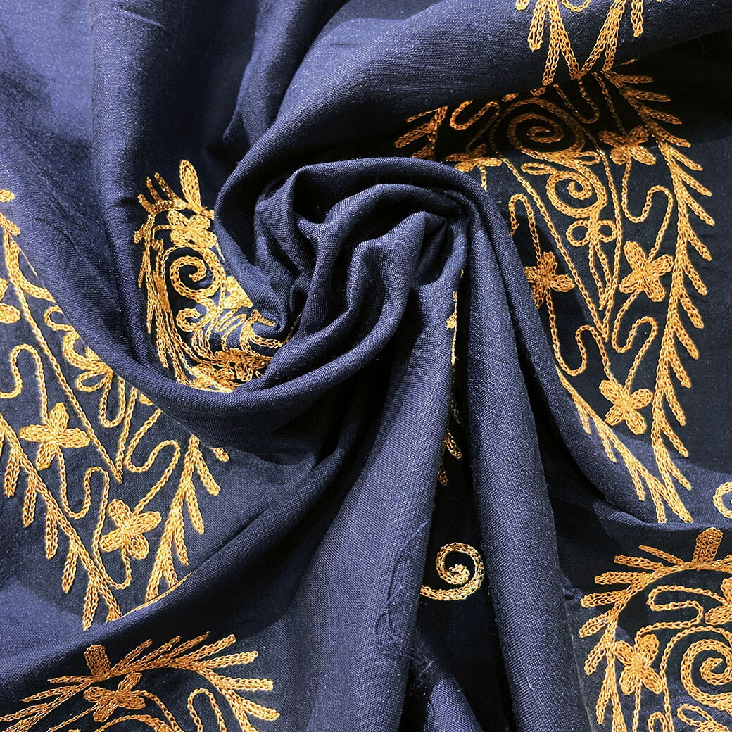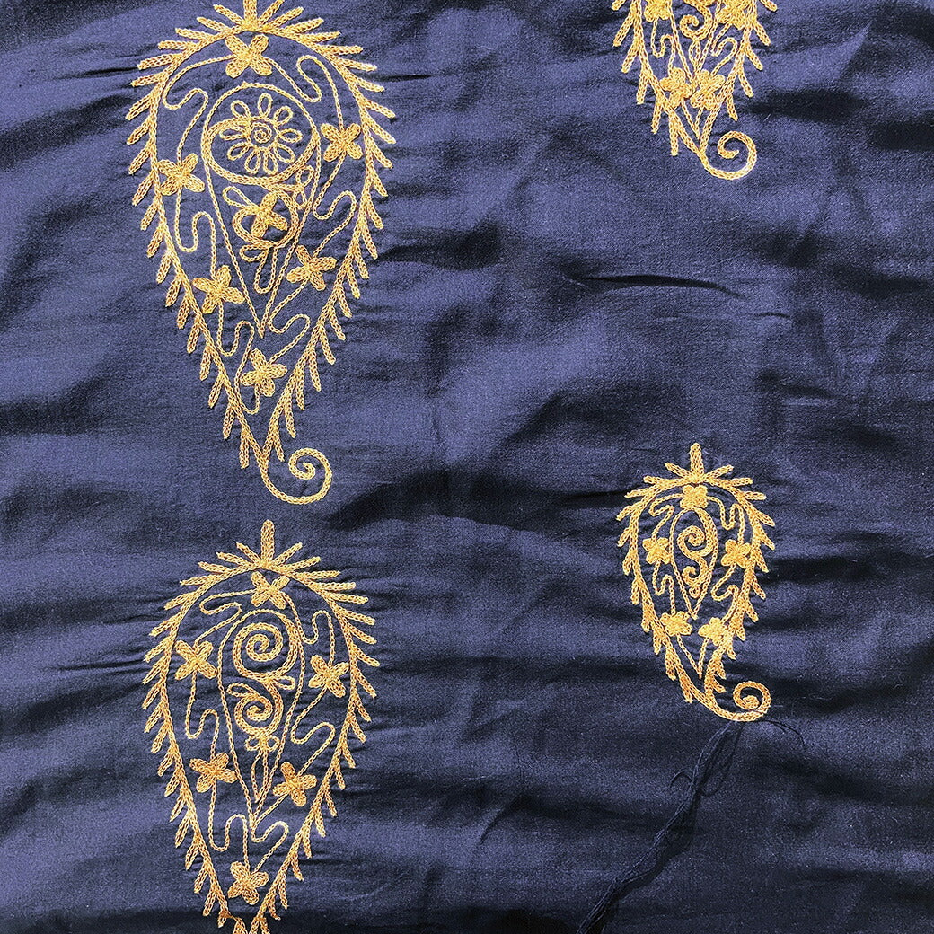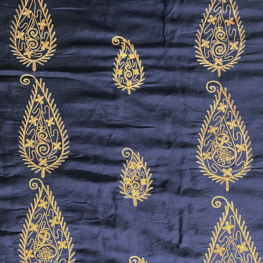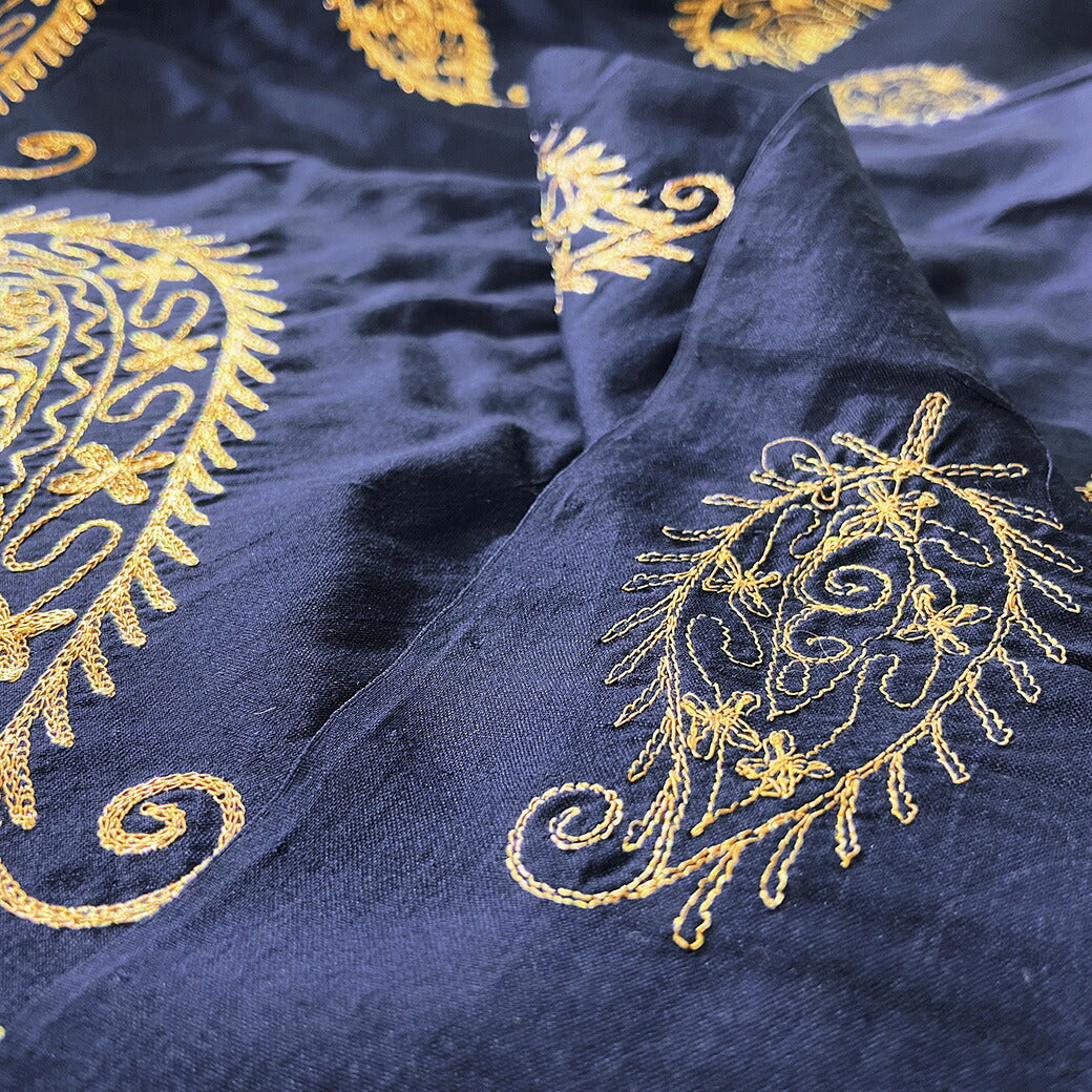 生地 【シルク ペイズリー ネイビー (B)】 インド綿生地 シルク ペイズリー ペイズリー柄 ネイビー 金糸 布 絹100% インド産 インド綿 手芸 ハンドメイド 衣装用生地 青 エスニック エキゾチック 衣装生地 金