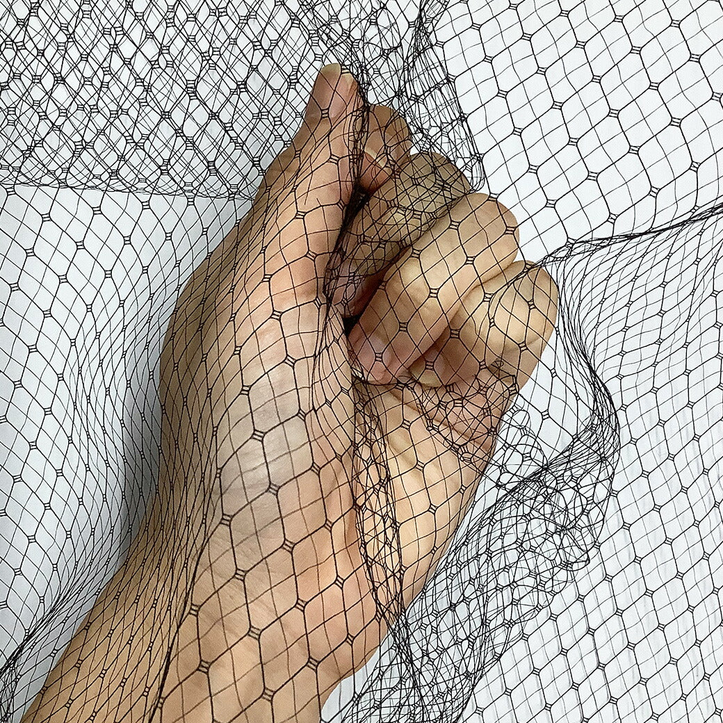 生地 【 チュールヘアーネット 白黒 】メッシュ生地 巾92cm ナイロン100%