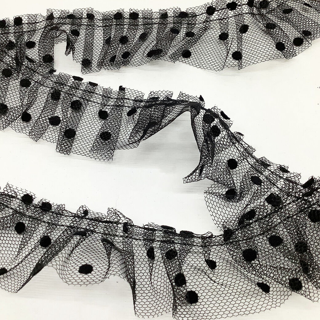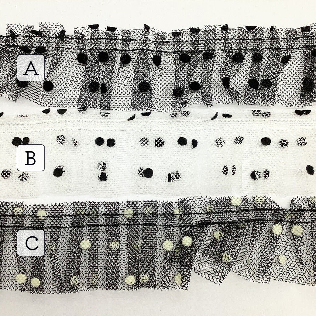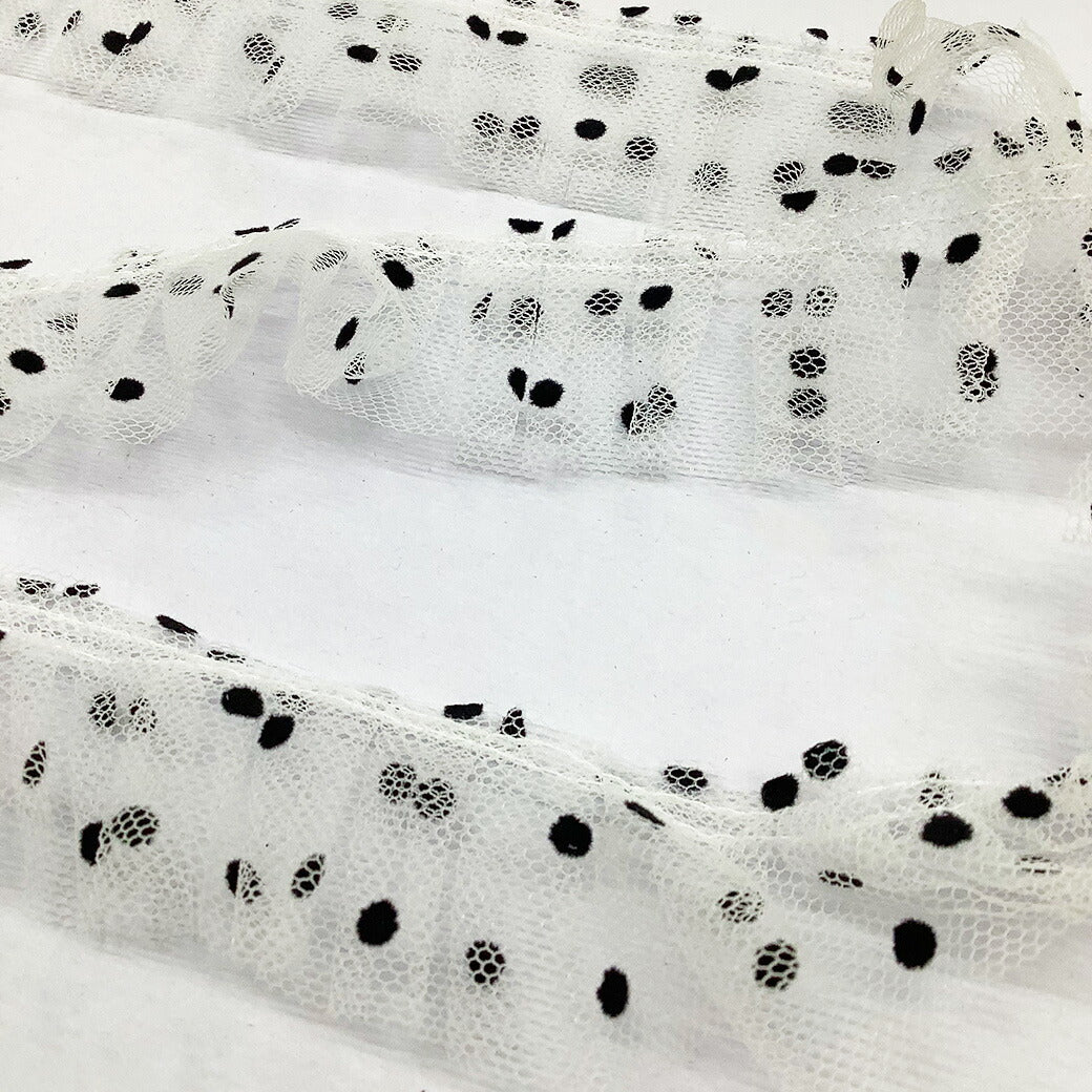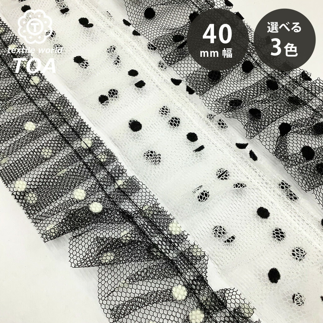 【ドットフリルレースリボン 幅4cm】フリルリボンテープ 水玉模様 フリフリ レースフリル ハンドメイド資材 芸用テープ コスプレ 推し活 押し活 ゴスロリ ロリータファッション ヘアアクセサリー コスチューム 手芸用 パーツ ハロウィン ライブ ラッピング Textile World TOA