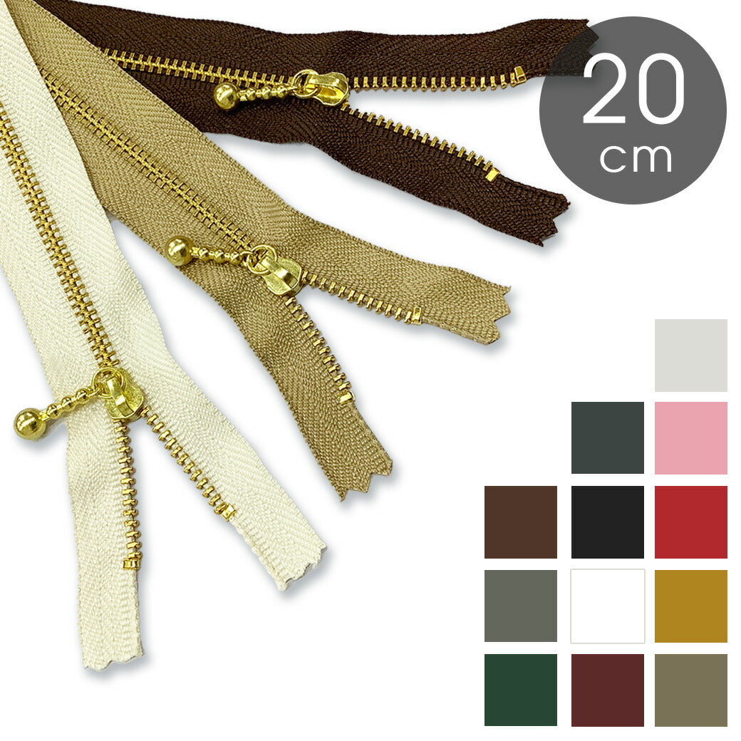 生地【YKK ファスナー玉付きゴールド 20cm 】玉付きファスナー ゴールド ファスナー 3連スライダー YKKファスナー 玉つき 3連 ボール チェーン スタンダード ジッパー チャック ポーチ バッグ ハンドメイド 手芸