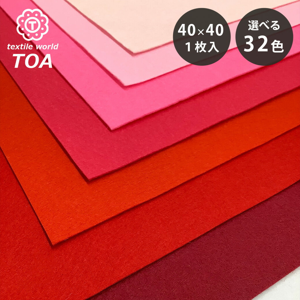 生地 【 ファミーフェルト 全32色 40×40 赤系 】 カラーフェルト フェルト生地 大判 幅広 工作 ハロウィン 仮装 コスプレ 衣装 オーナメント おままごと ガーランド コースター コサージュ フォトフレーム 小物 ポーチ フェルトバッグ ヘアアクセサリー Textile World TOA