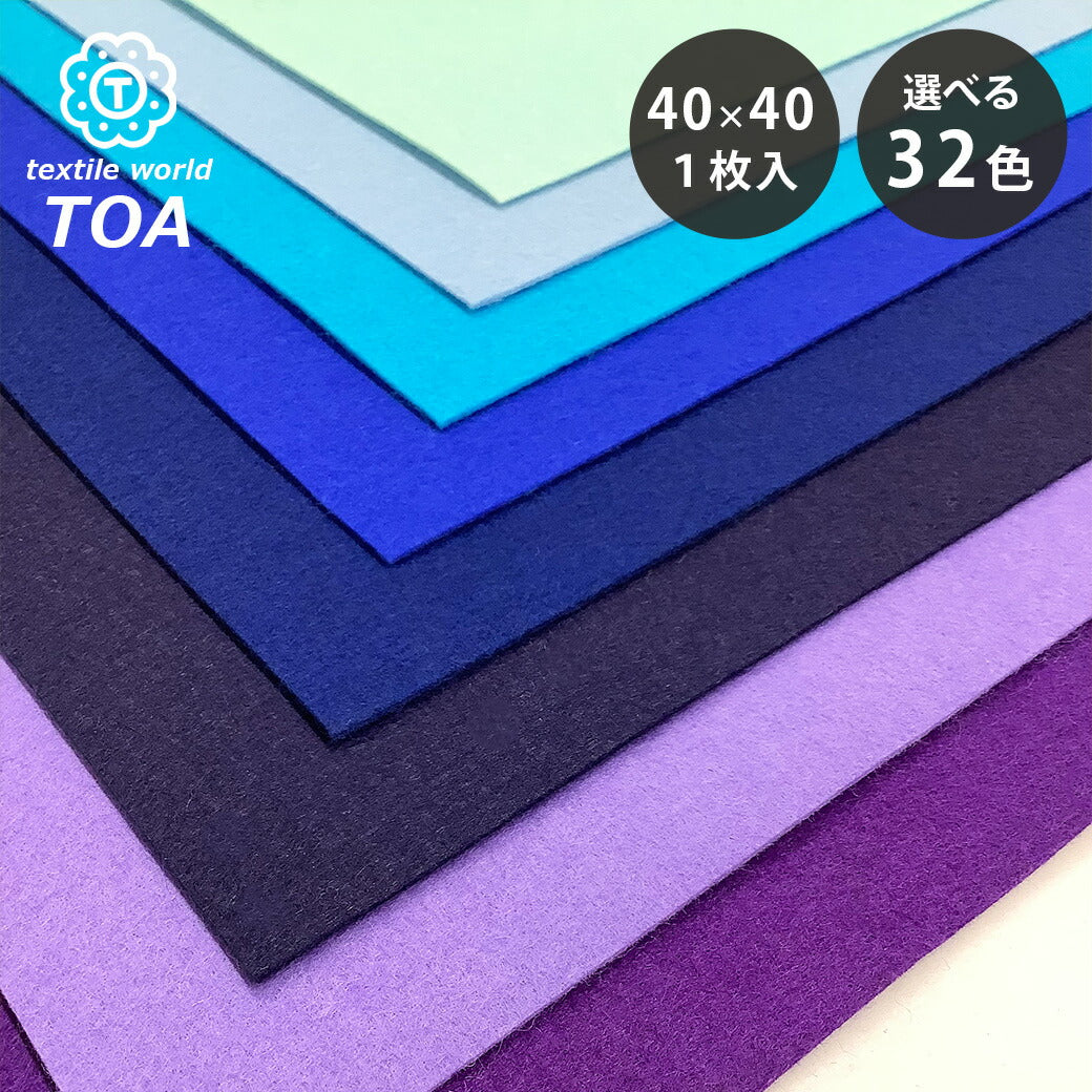 生地 【 ファミーフェルト 全32色 40×40 青系 】 カラーフェルト フェルト生地 大判 幅広 工作 ハロウィン 仮装 コスプレ 衣装 オーナメント おままごと ガーランド コースター コサージュ フォトフレーム 小物 ポーチ フェルトバッグ ヘアアクセサリー Textile World TOA