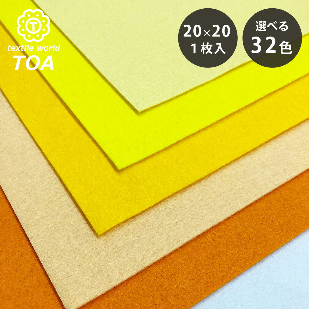 生地 【 ファミーフェルト 全32色 20×20 黄色系 】 カラーフェルト フェルト生地 大判 幅広 工作 ハロウィン 仮装 コスプレ 衣装 オーナメント おままごと ガーランド コースター コサージュ フォトフレーム 小物 ポーチ フェルトバッグ ヘアアクセサリー Textile World TOA