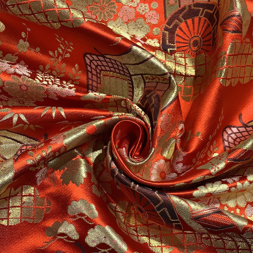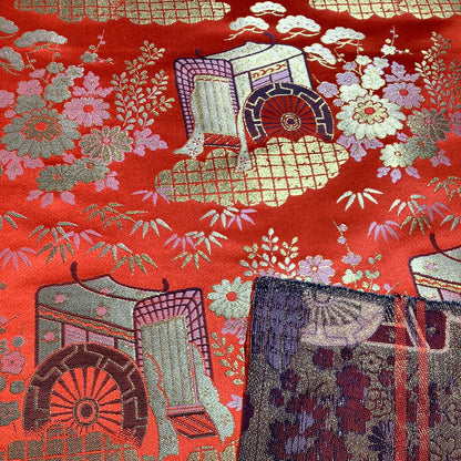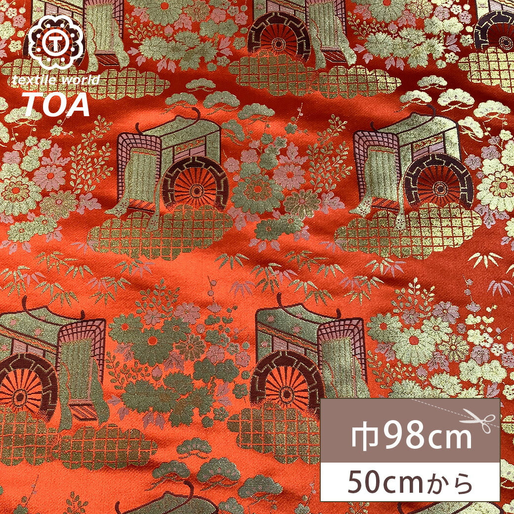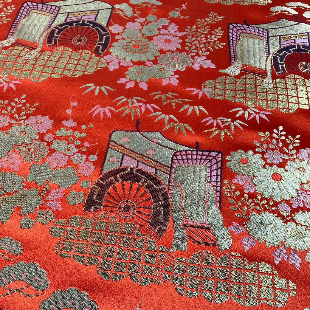 生地 【 金襴 ブロケード 御所車 】 金襴生地 御所車 和柄生地 源氏車 花御所車 車文様 御所車文 牛車 和柄 布 和風生地 京都西陣織 よさこい 金襴布 金襴 きんらん 仏具 座布団 つまみ細工 帯 人形衣装 能衣装 掛け軸