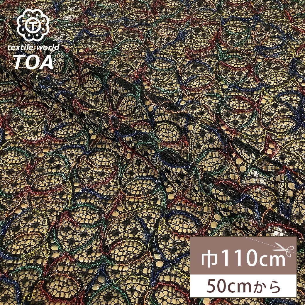 生地 【 レース ラメ入り ブラック 】 レース生地 ラメ キラキラ 虹色 レインボー 黒 ブラック 衣装生地 ダンス衣装 ドレス衣装 発表会 舞台衣装 コスプレ衣装 ハロウィン クリスマス コスプレイヤー コスプレ生地 きれい