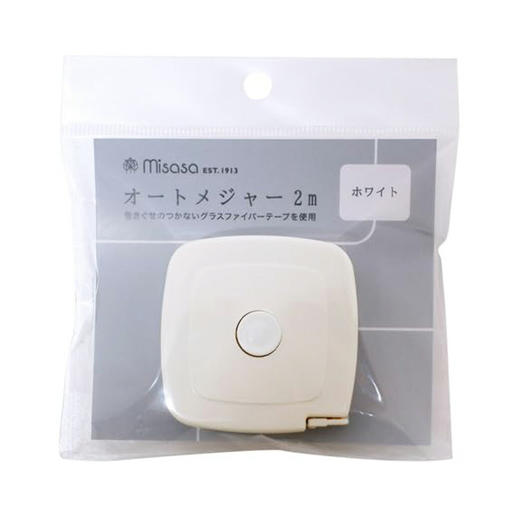 ミササ 【 オートメジャー2m ホワイト No.8128 】 メジャー 巻き尺 オートメジャー ロータリーメジャー テープメジャー 両面目盛り付き 無地 ホワイト 白 2m 洋裁 裁縫 定規 200cm 2メートル 採寸 mi