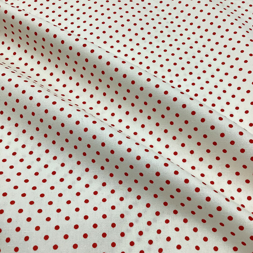 小さくて可愛らしい水玉プリントの綿シーチング生地。