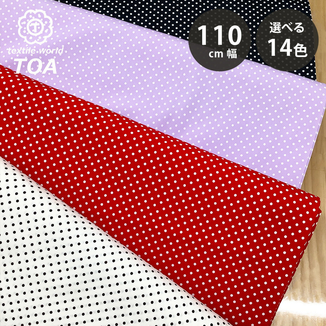 生地 【 水玉プリント 小 14色 】 ドット柄 水玉生地 シーチング 水玉 水玉模様 ドット柄生地 綿シーチング 定番生地 入園 入学 新学期準備 幼稚園 保育園 小学生 女の子 男の子 巾着 ポーチ 綿生地 綿 コットン 巾着袋 シンプル 定番 人気 おすすめ Textile World TOA