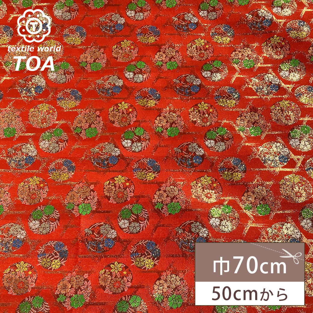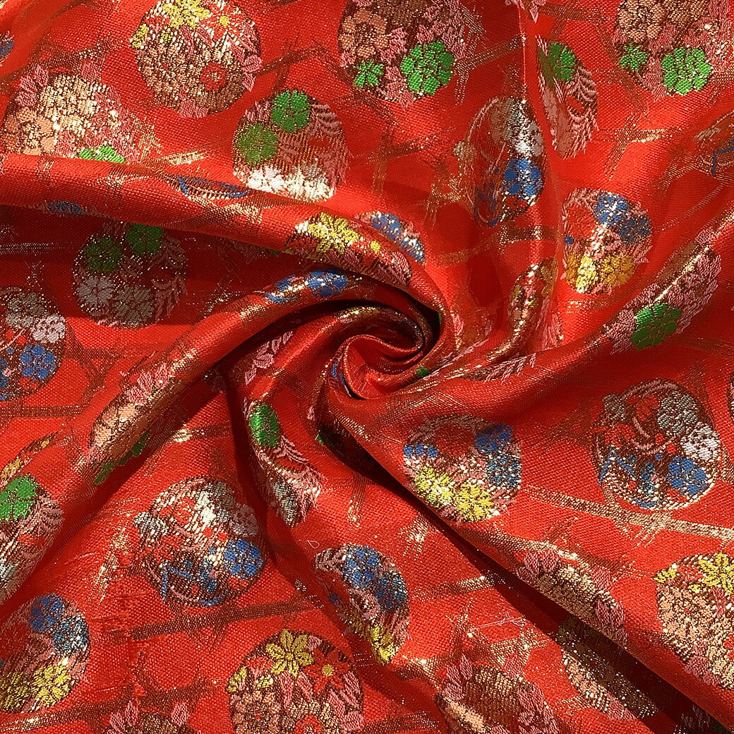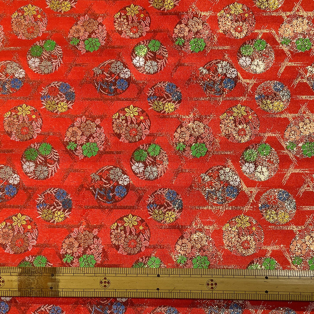 生地 【 金襴 手鞠 レッド 】 金襴生地 手毬 毬 まり 鞠 菊 和柄 布 和風生地 京都西陣織 よさこい 金襴布 金襴 きんらん 仏具 座布団 つまみ細工 人形衣装 能衣装 袈裟 表装 掛け軸 御朱印帳ケース 袱紗入れ 袱