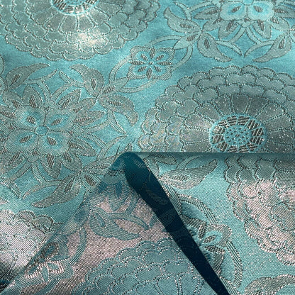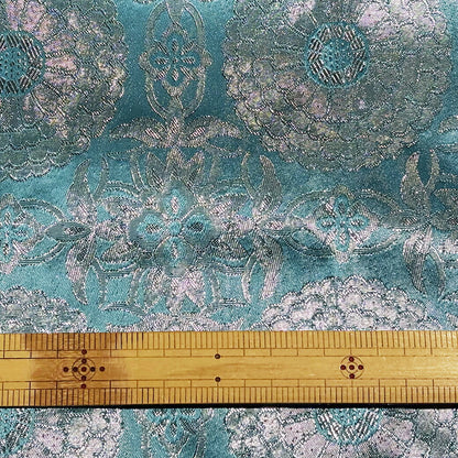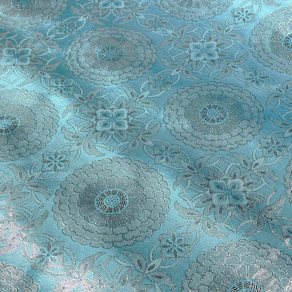 生地 【 金襴 シルバー×水色 】 金襴生地 二釜菊丸 七宝文 花菱 和柄 布 和風生地 京都西陣織 よさこい 金襴布 金襴 きんらん 仏具 座布団 つまみ細工 人形衣装 能衣装 袈裟 表装 掛け軸 クッションカバー におい袋
