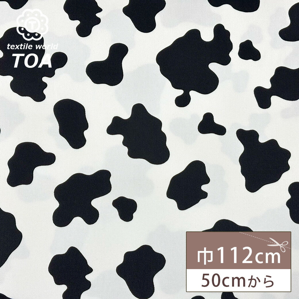 生地 【 牛 綿プリント 白黒 】 牛柄 ホルスタイン 柄 生地 アニマル柄 動物柄 ツイル ツイルプリント 綿ツイル トートバッグ バッグ 可愛い かわいい 綿プリント 綿 コットン インテリア ハンドメイド 手作り 手芸 ソーイング 布 入園 入学 新学期準備 Textile World TOA